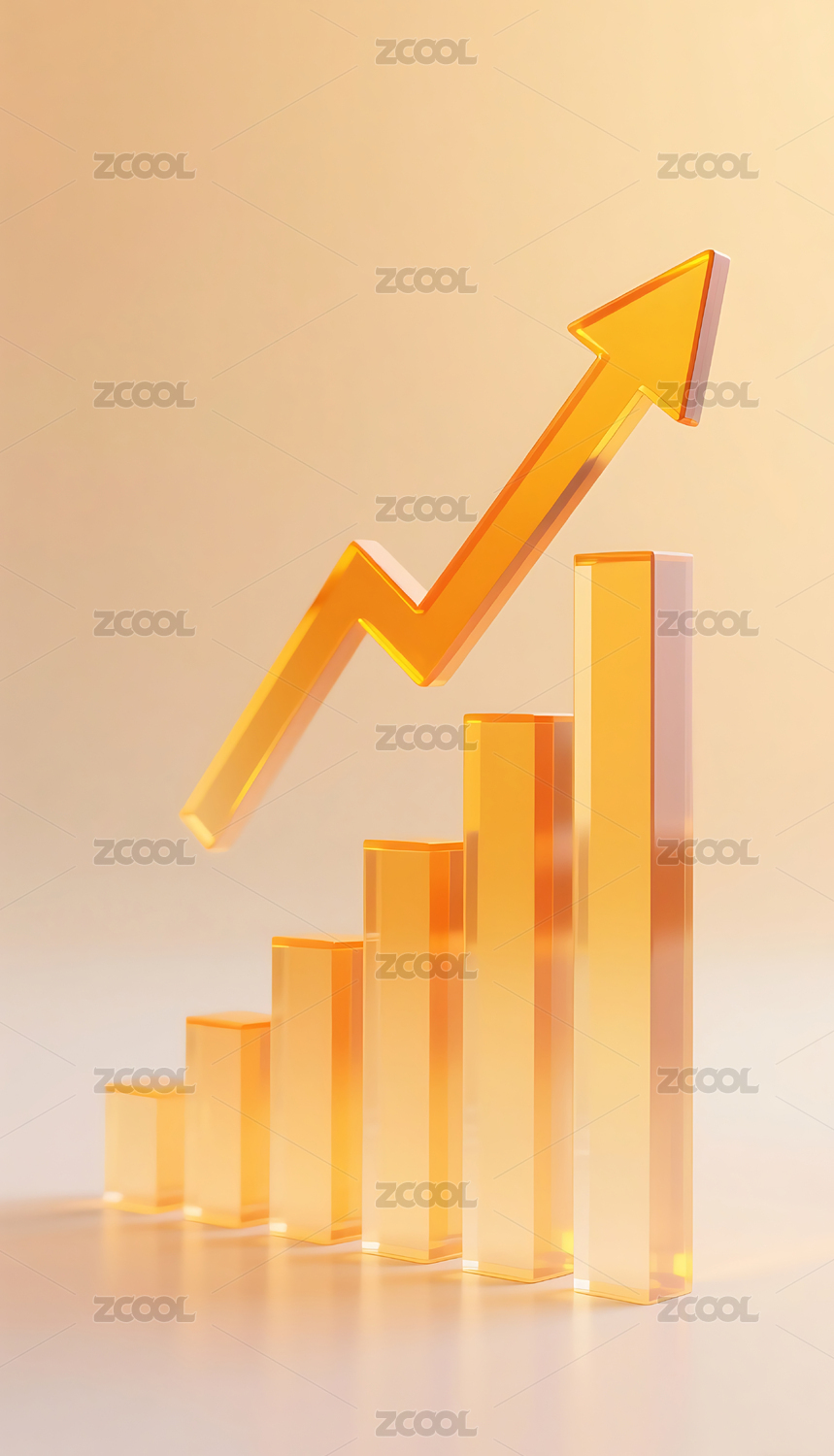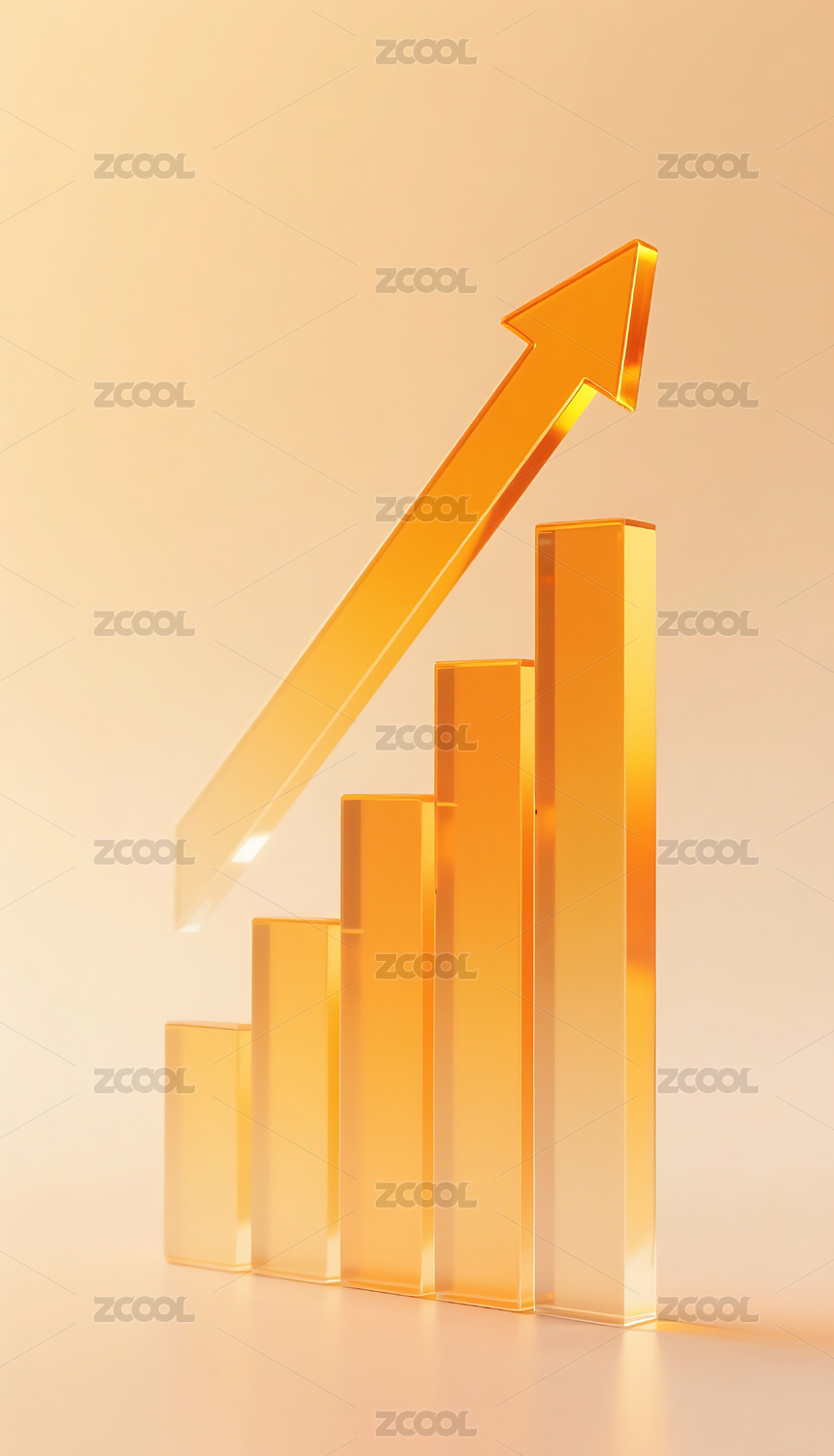 橙色渐变玻璃质感金融柱状图增长箭头背景