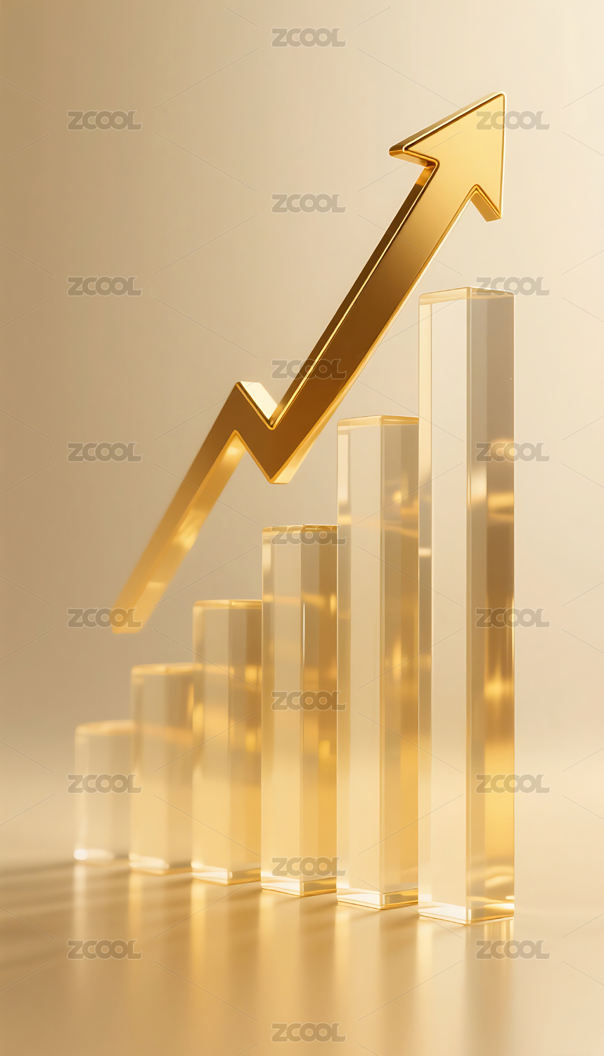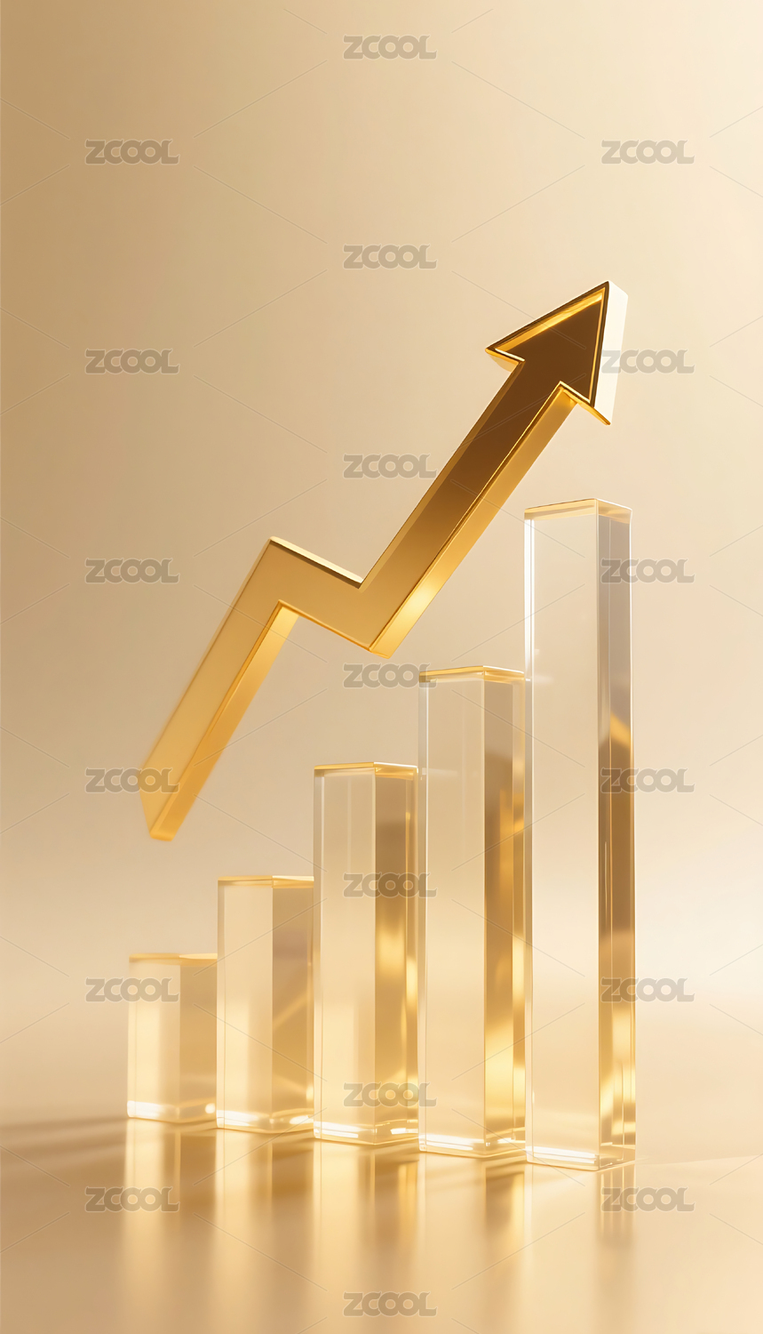 金色渐变玻璃质感金融柱状图增长箭头背景