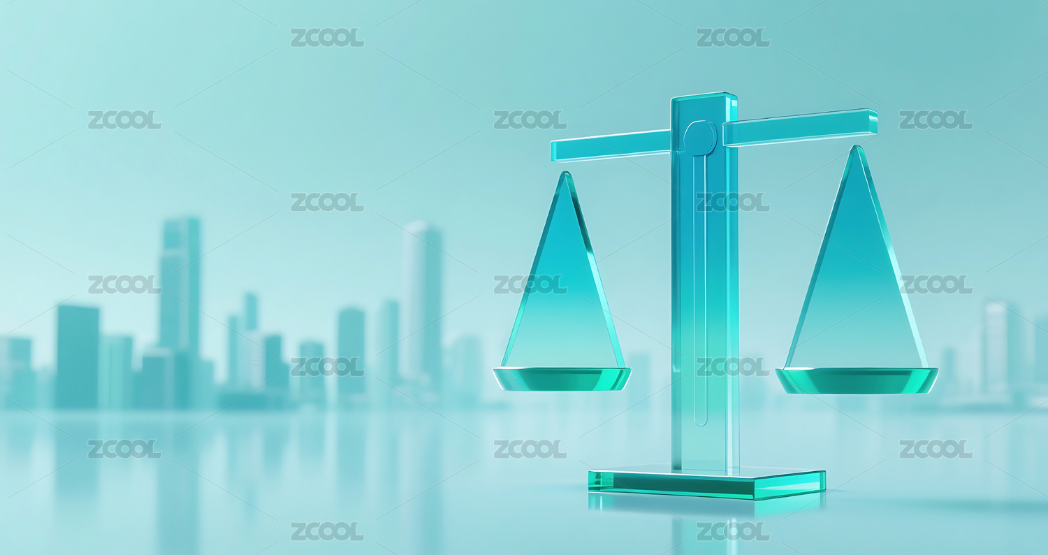 蓝绿色渐变玻璃质感天平城市建筑背景