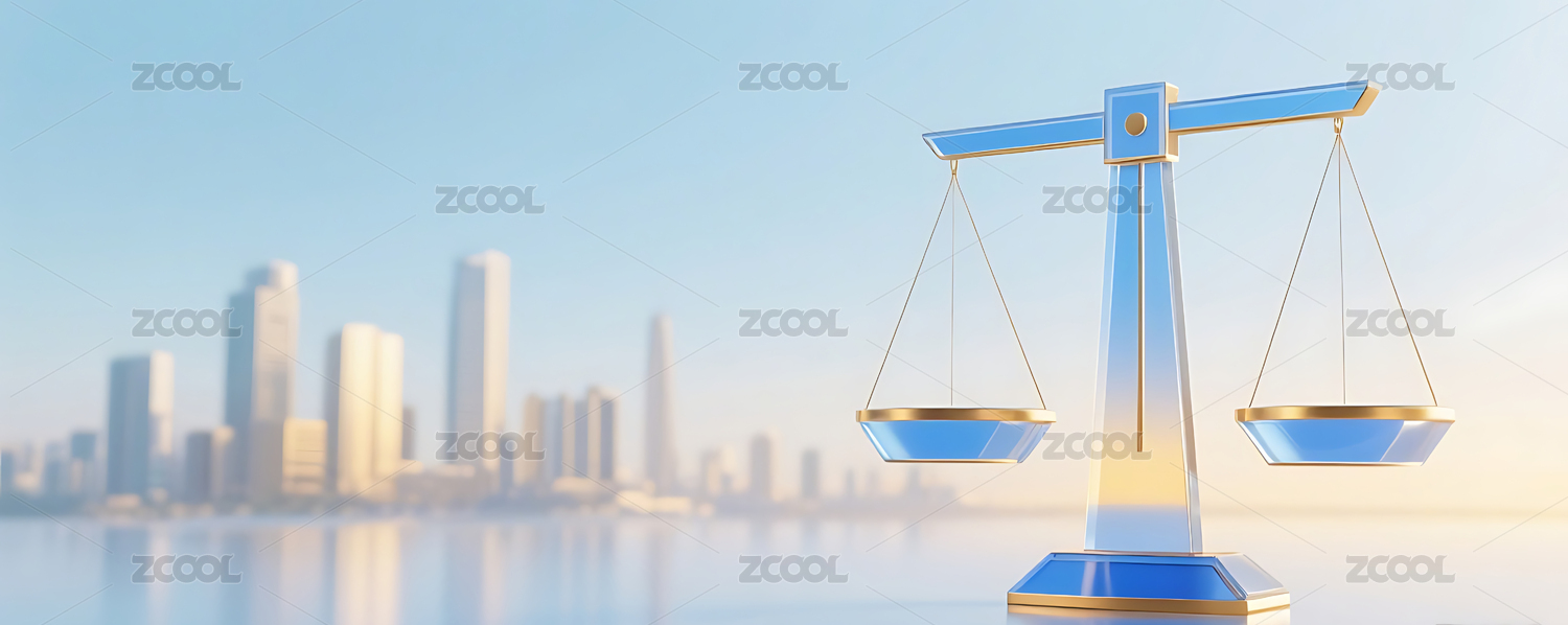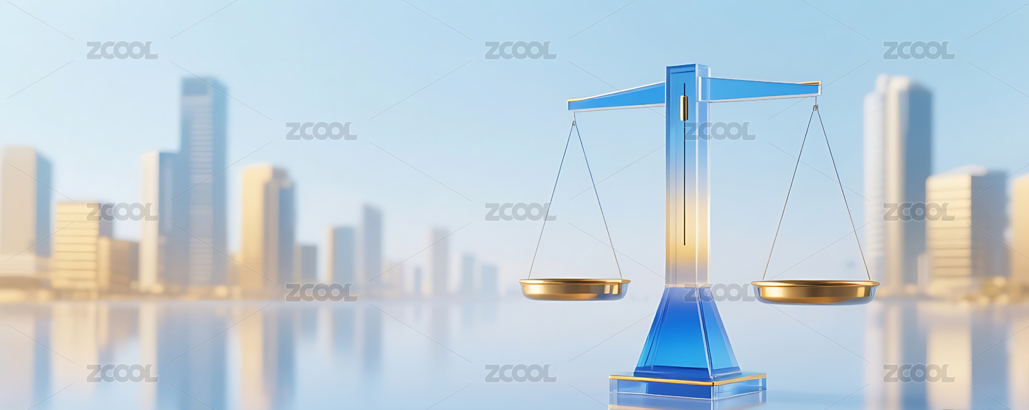 蓝绿色渐变玻璃质感天平城市建筑背景