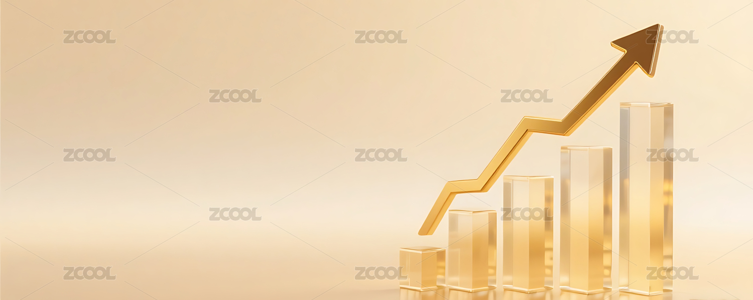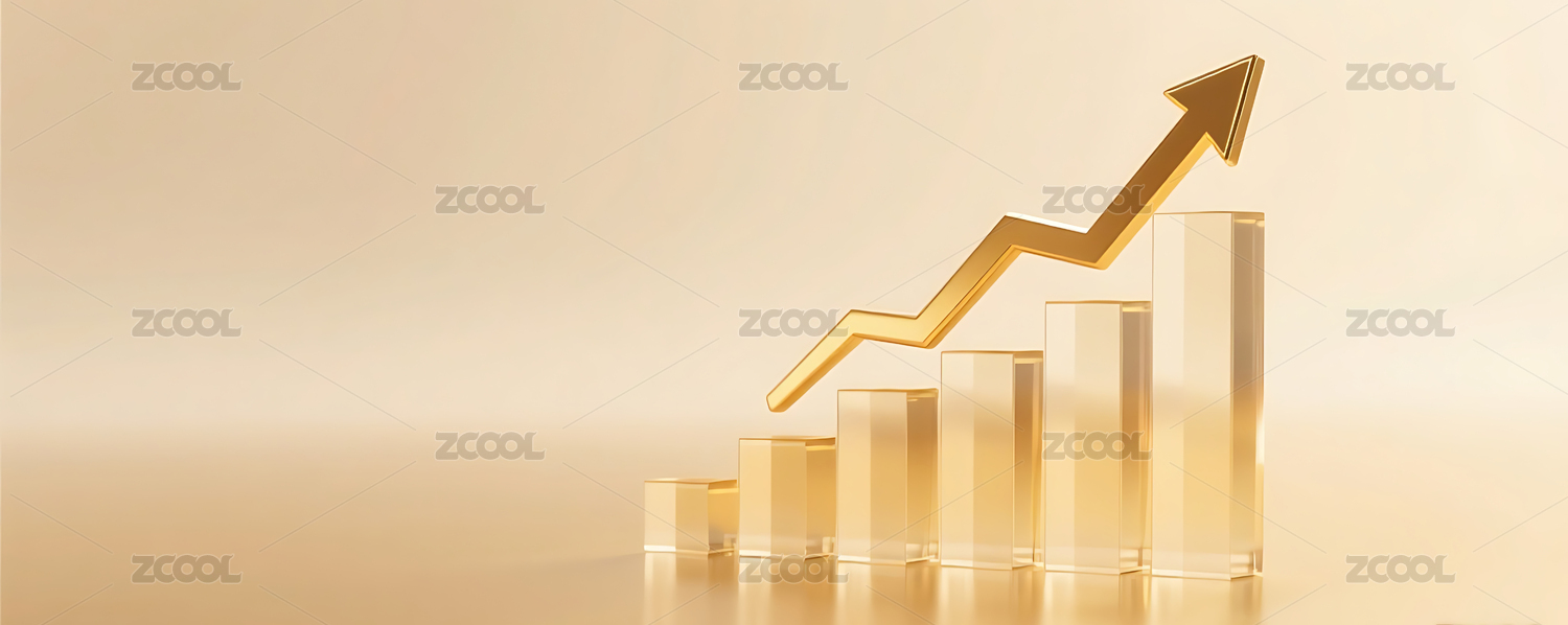 金色渐变玻璃质感金融柱状图增长箭头背景