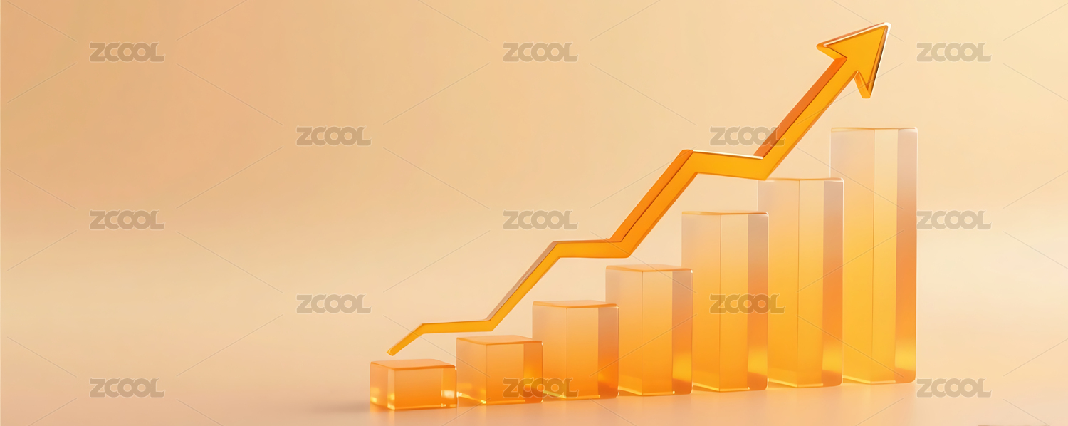 橙色渐变玻璃质感金融柱状图增长箭头背景