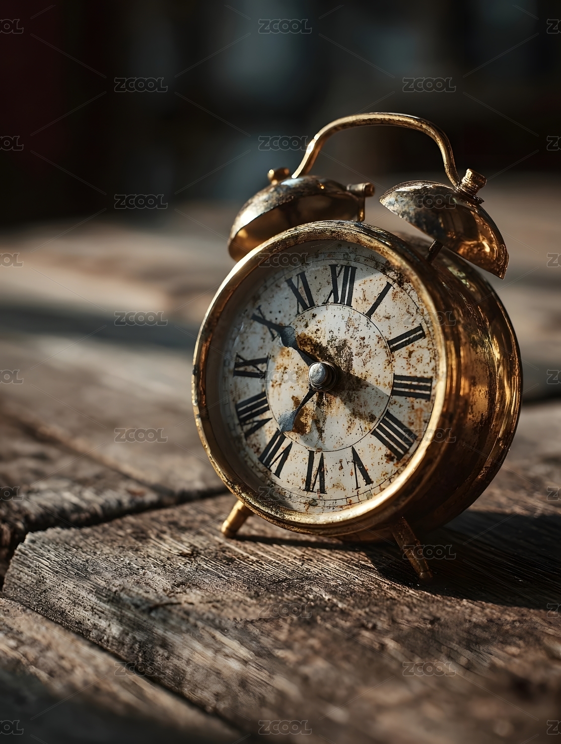 复古闹钟静置木桌