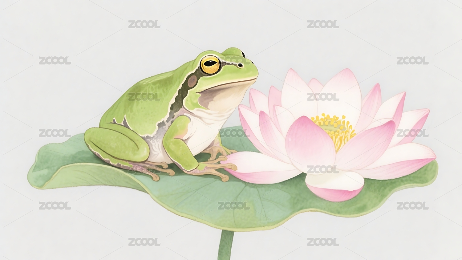 古风水彩插画 荷叶上的青蛙