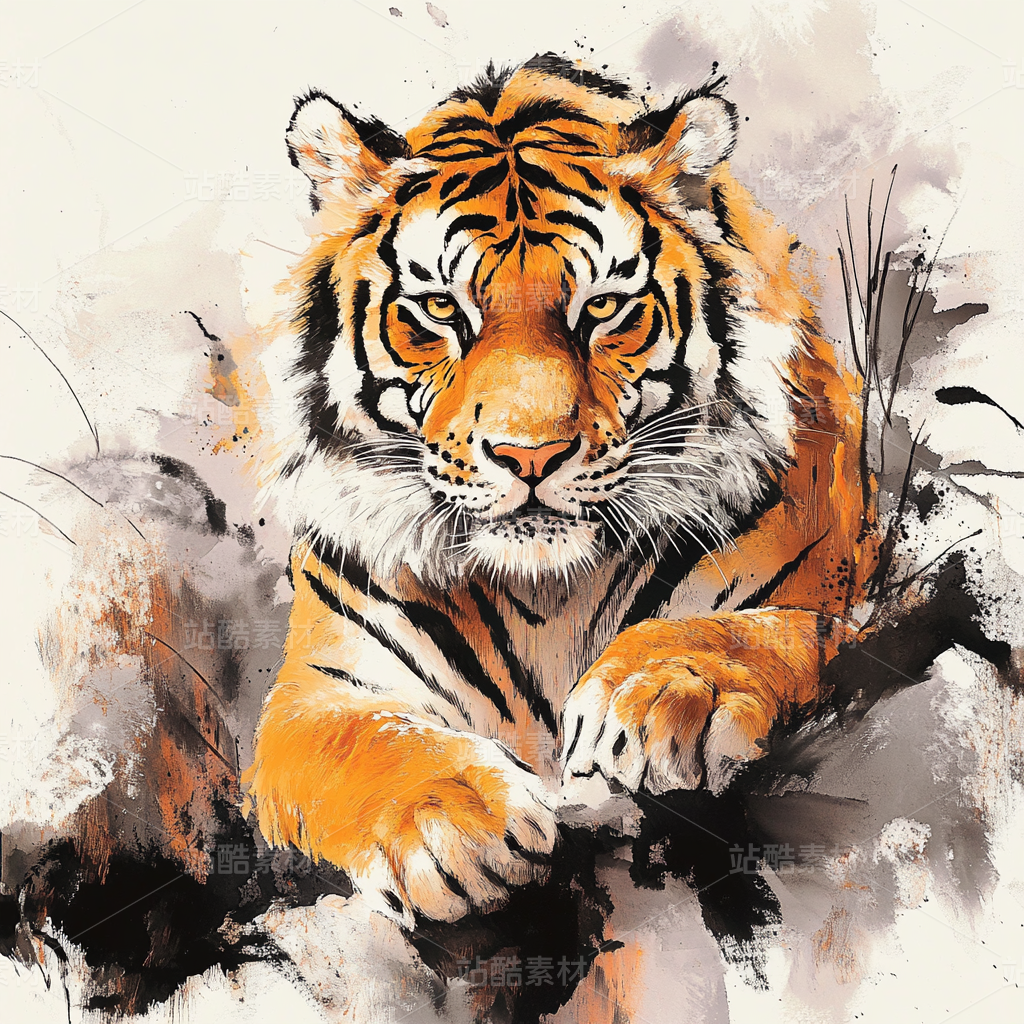 奔腾猛虎,水彩飞溅
