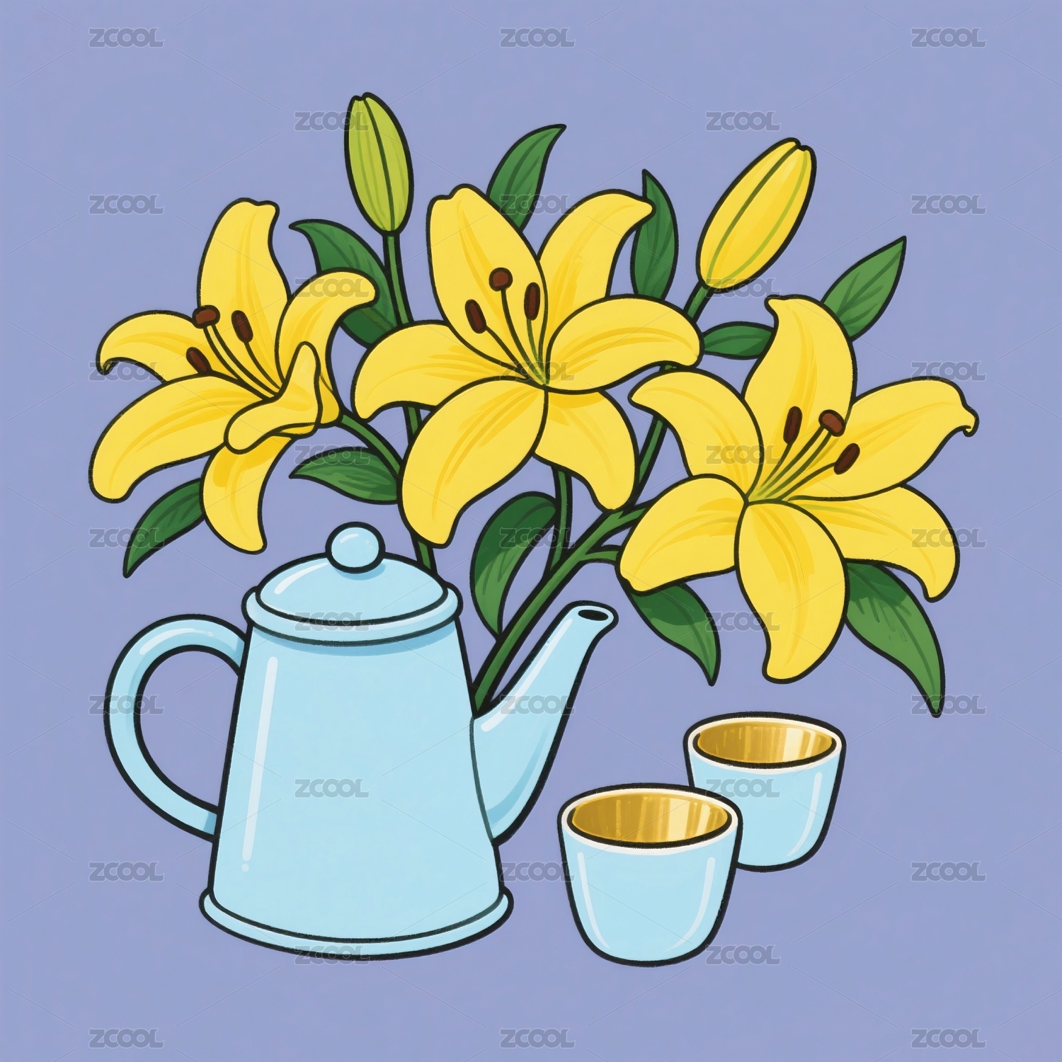 茶壶,花朵,静物,摆放,壶嘴,优雅,自然,绿色,壶柄,淡雅