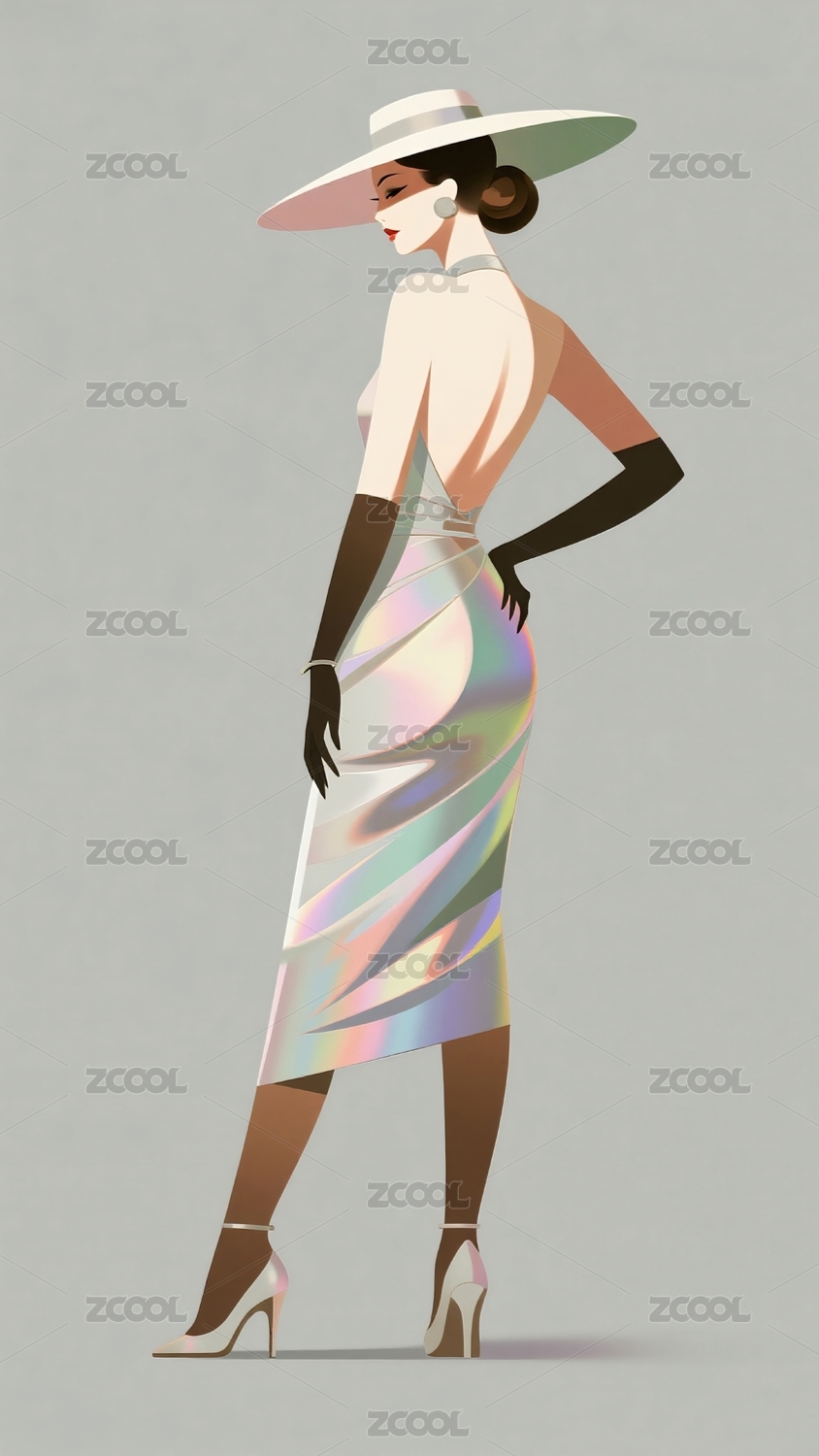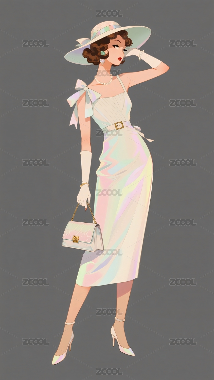 优雅,休闲,美丽,帽子,连衣裙,白色,素雅,裙子,短发,高跟