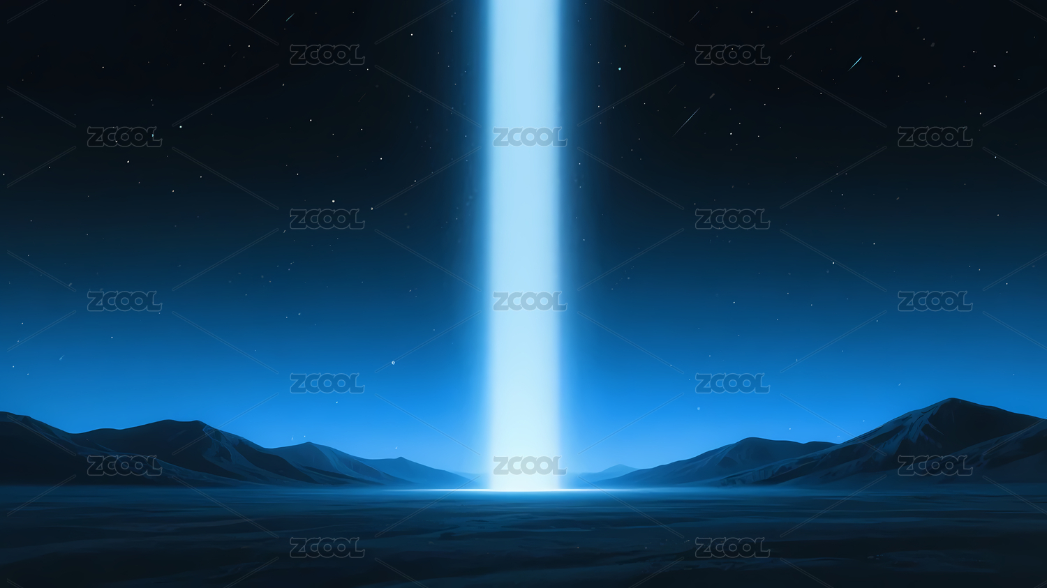 蓝色光柱升起夜空山脉背景