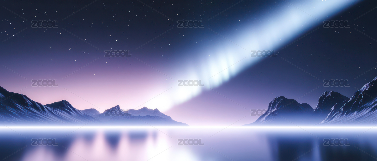 蓝色光柱映衬山脉夜空背景