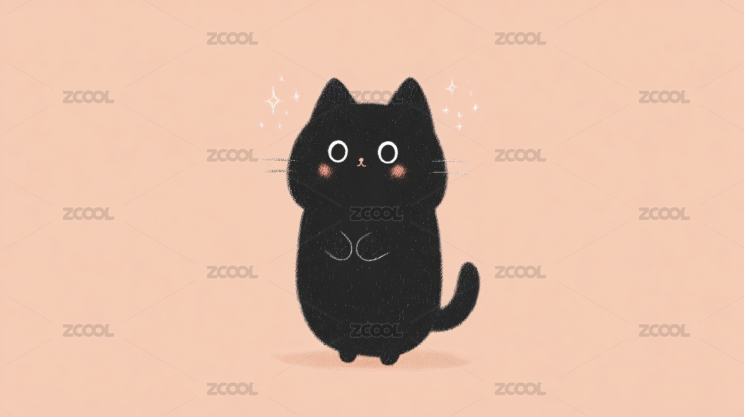 黑猫,帽子,围巾,爱心,插画,可爱,卡通,小动物,暖色调,简约