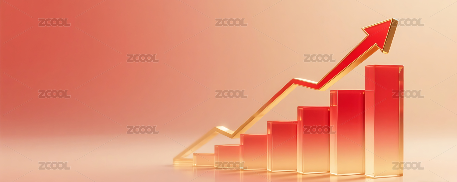 红金色渐变玻璃质感金融柱状图增长箭头背景