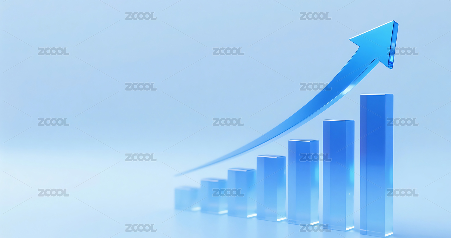 蓝色渐变玻璃质感金融柱状图增长箭头背景