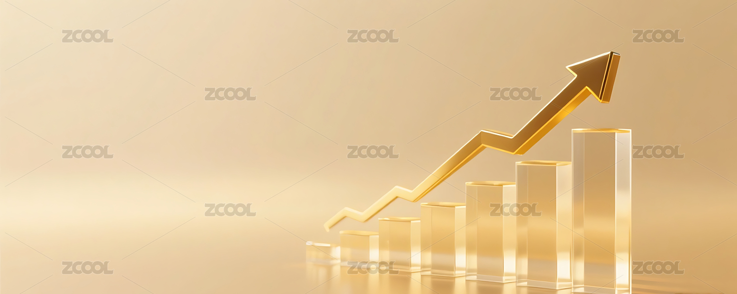 金色渐变玻璃质感金融柱状图增长箭头背景