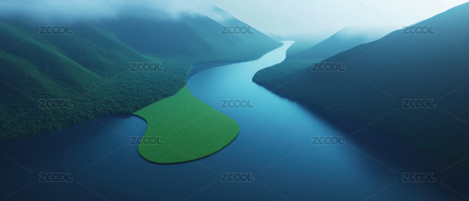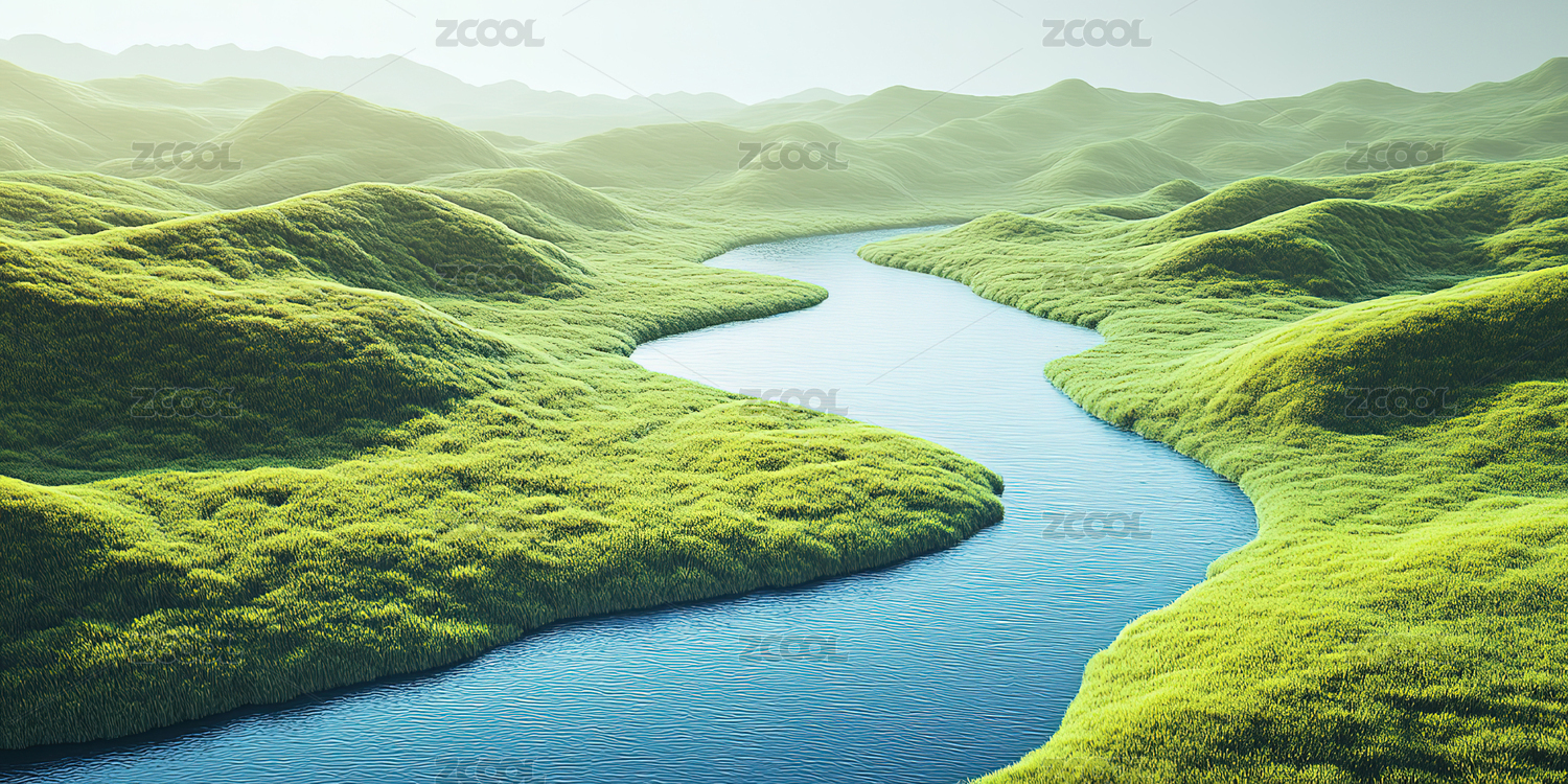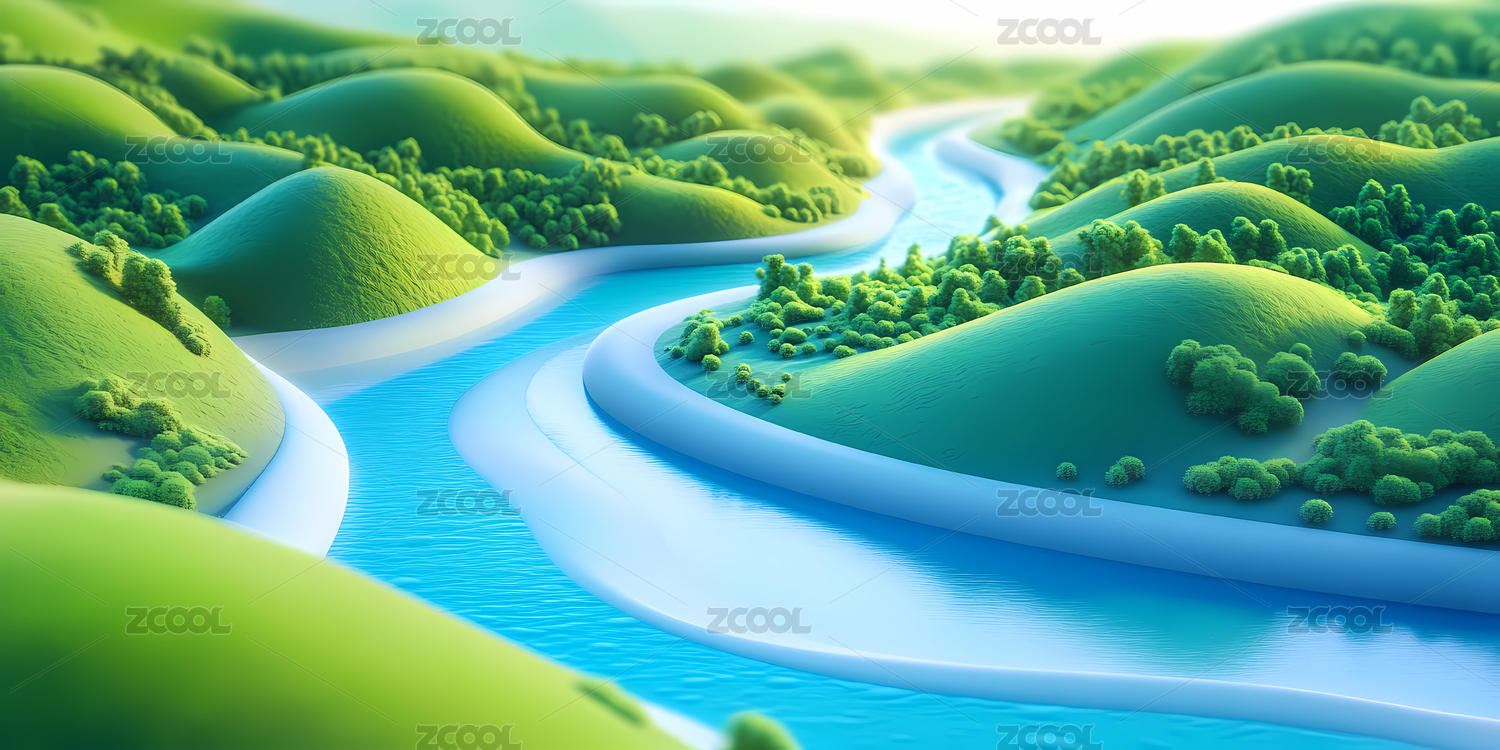 绿色,山水,立体,场景,风景,艺术,创意,自然,山峦,河流