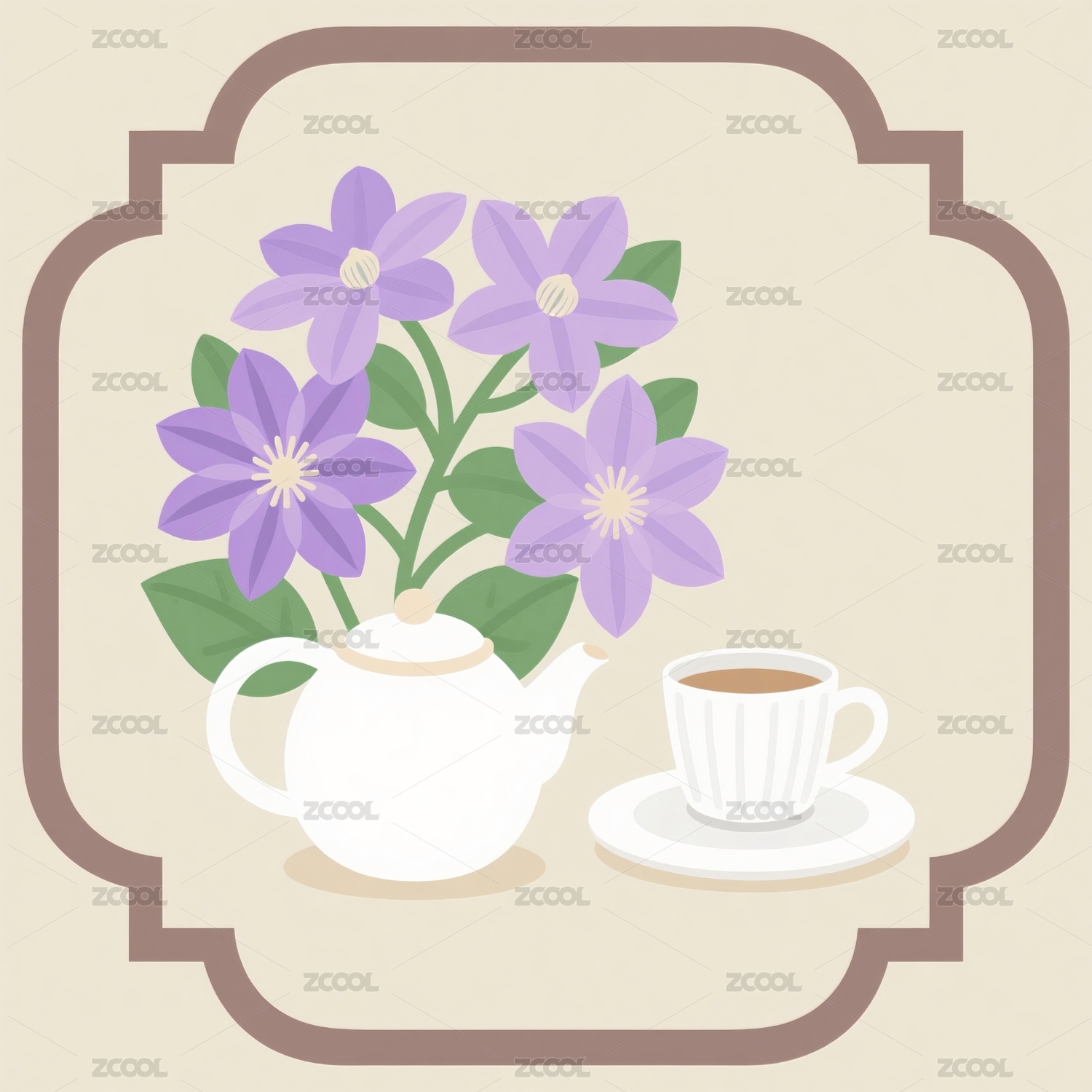 茶壶,花朵,绿色,枝叶,摆放,美丽,优雅,生活,柔和,静物