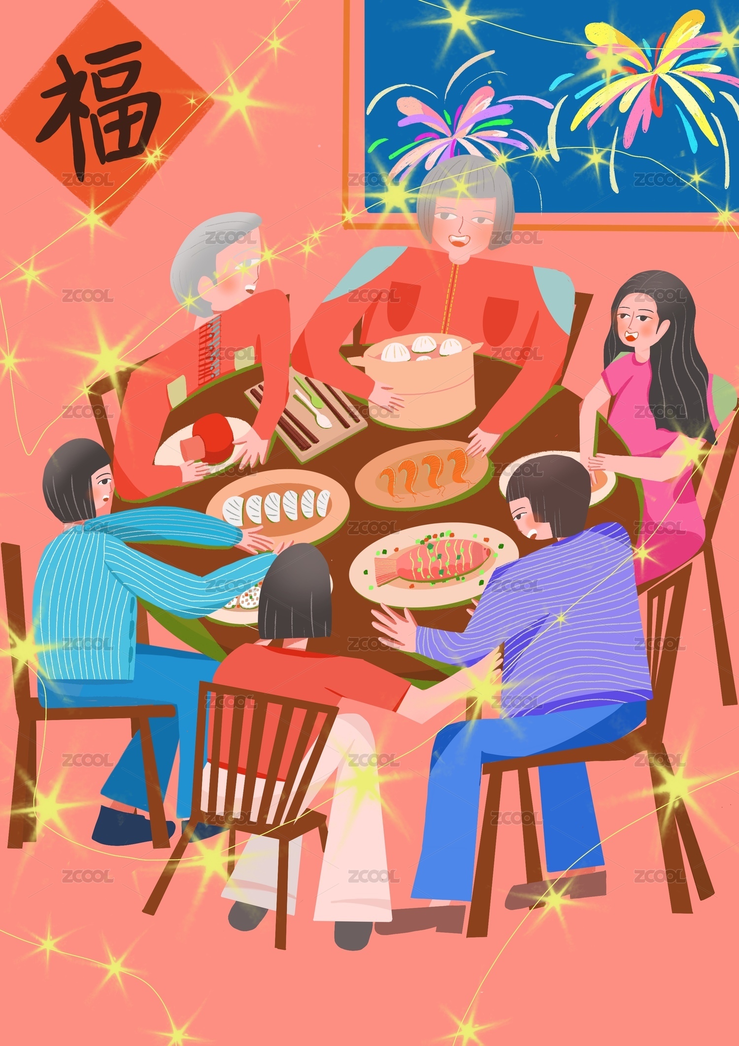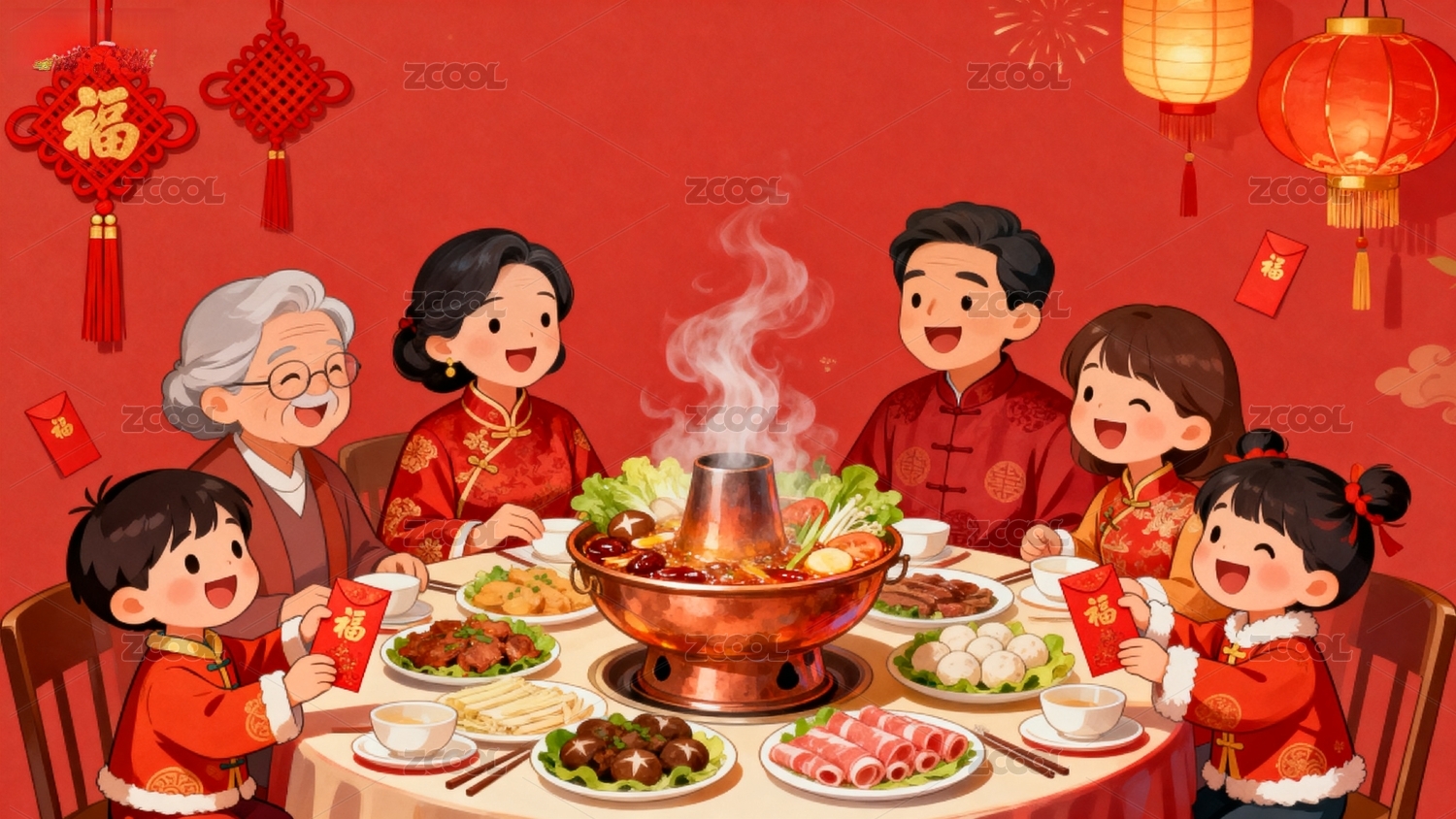 团圆,美食,聚餐,灯笼,祝福,菜肴,鱼肉,喜庆,节日,红包