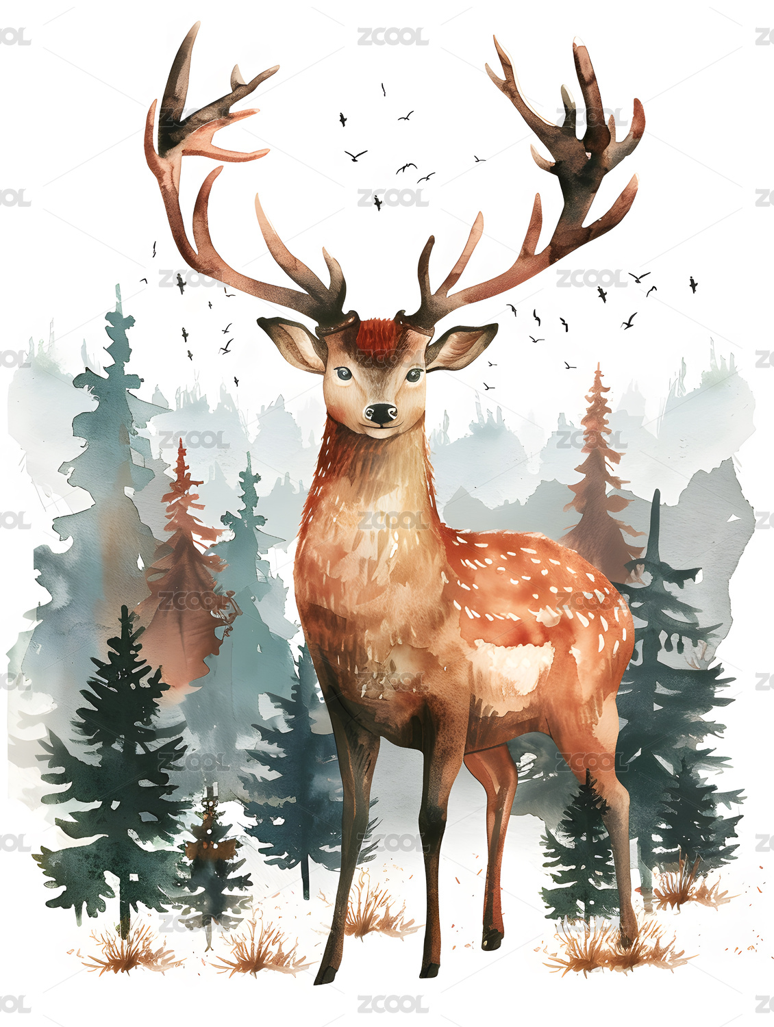 水彩风格梅花鹿