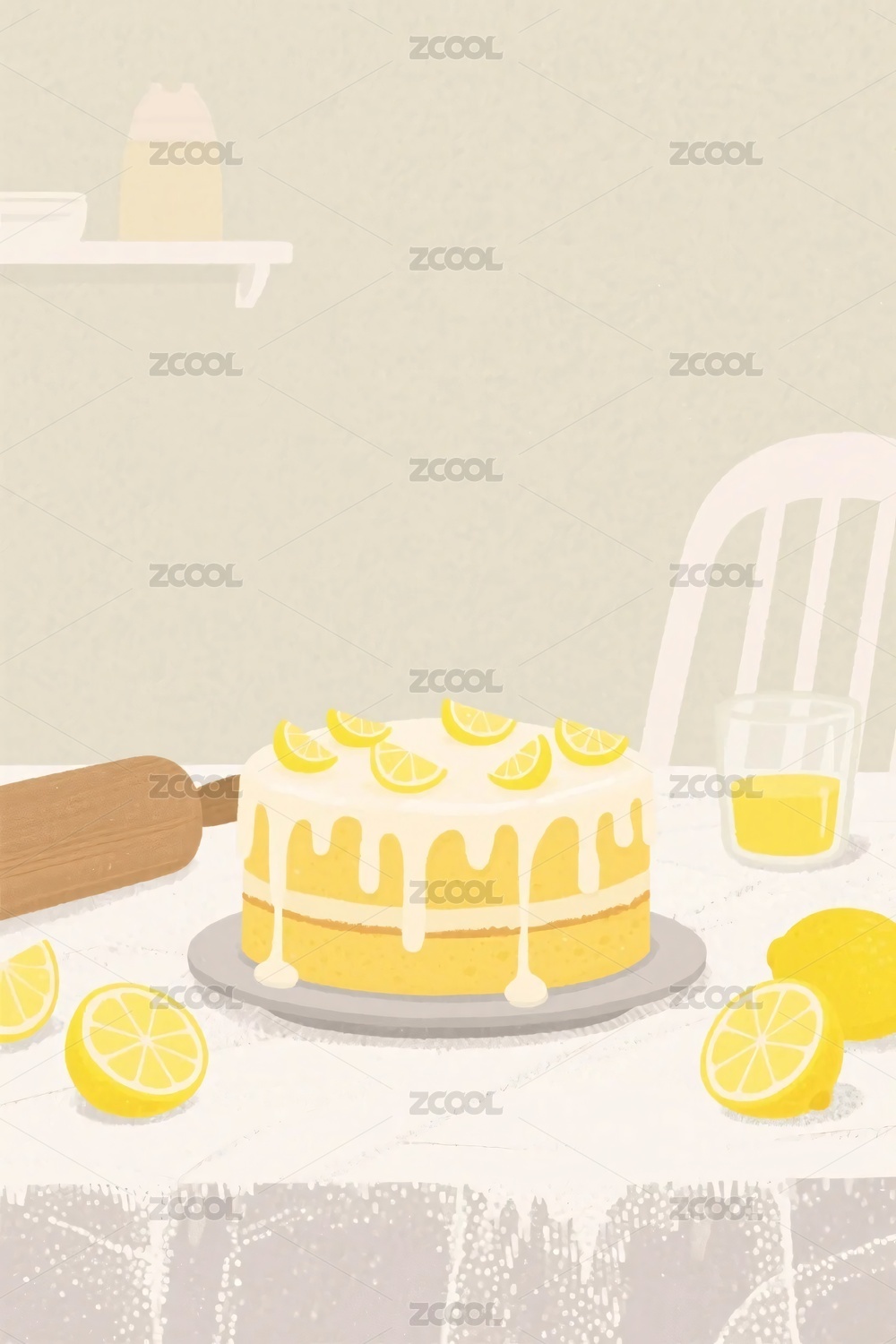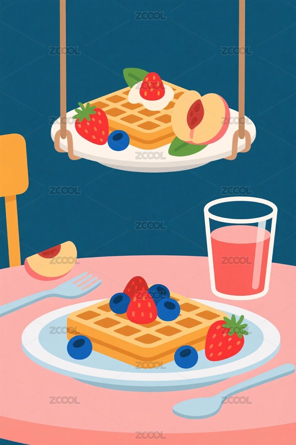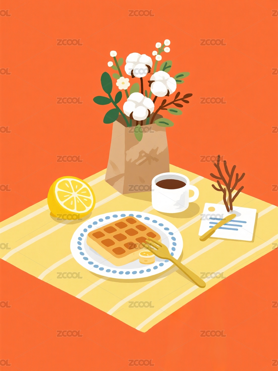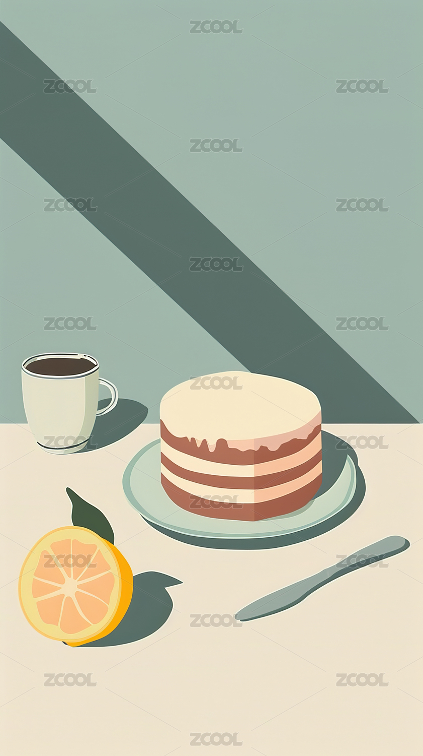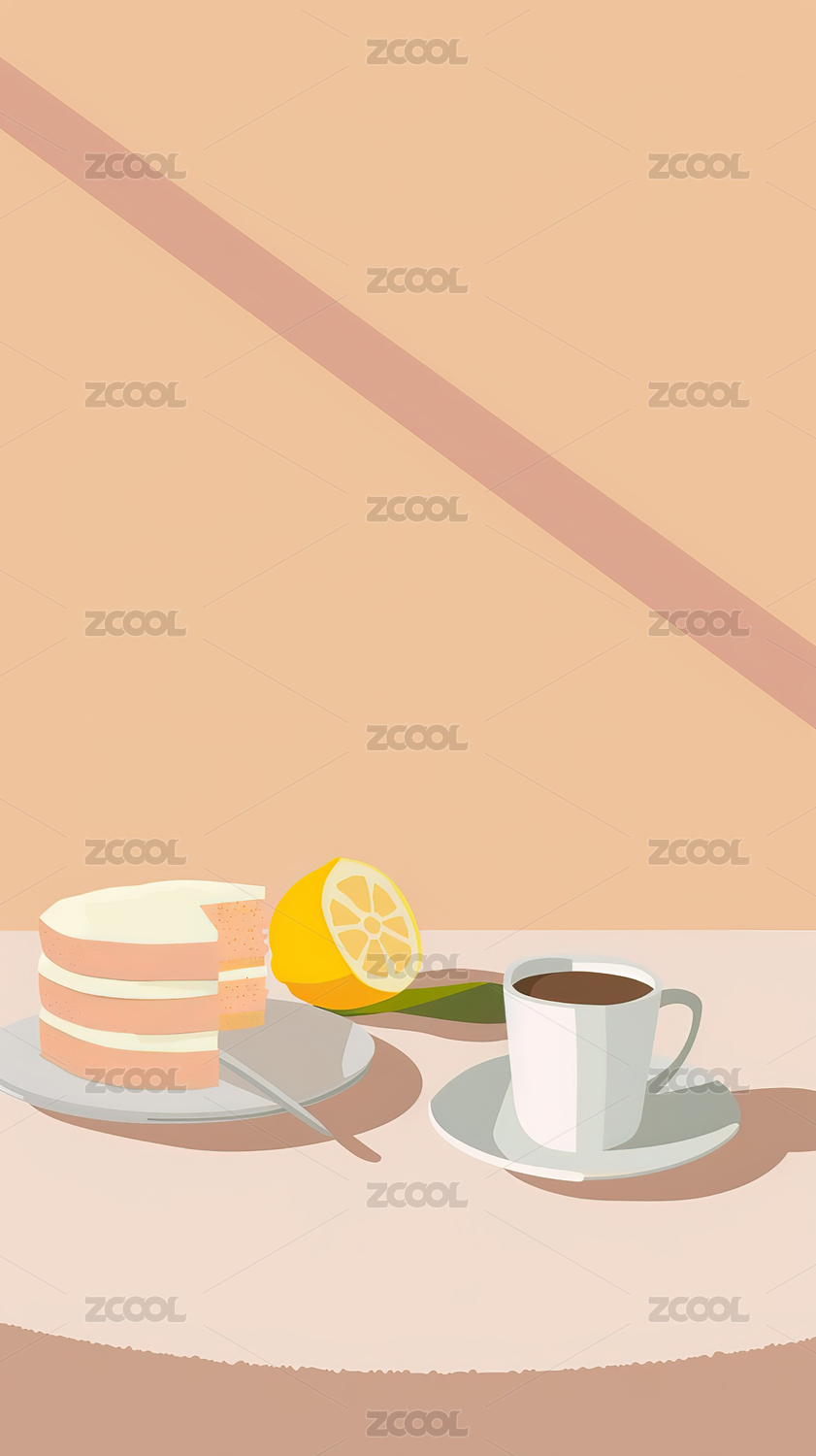 牛奶咖啡蛋糕下午茶简约扁平风时尚插画
