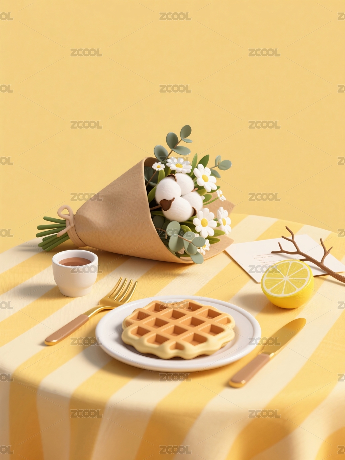 食物,桌面,美味,金色,阳光,华夫饼,叉子,早餐,黄色,餐桌