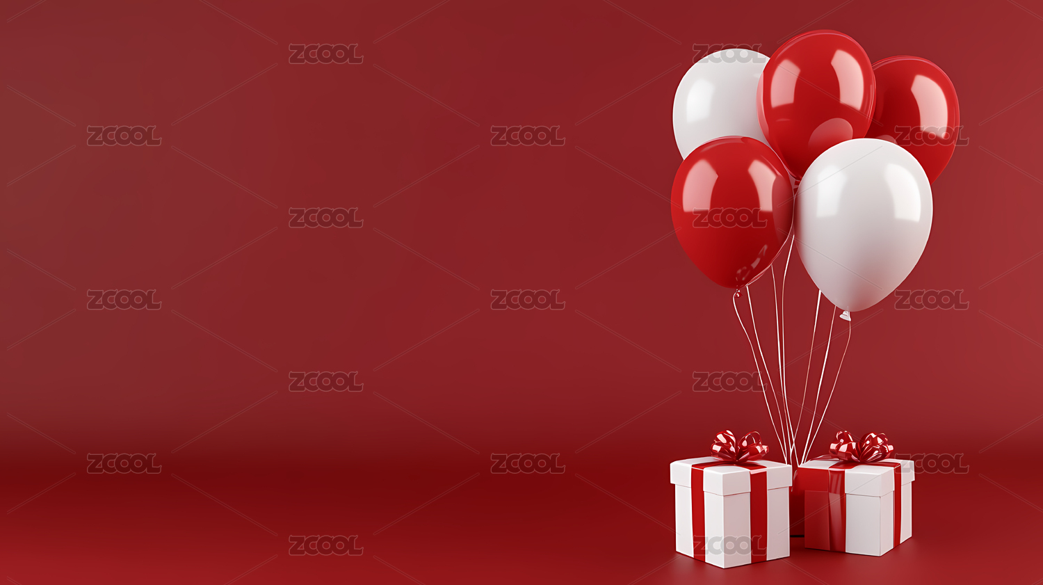金色气球和红色背景的庆祝场景