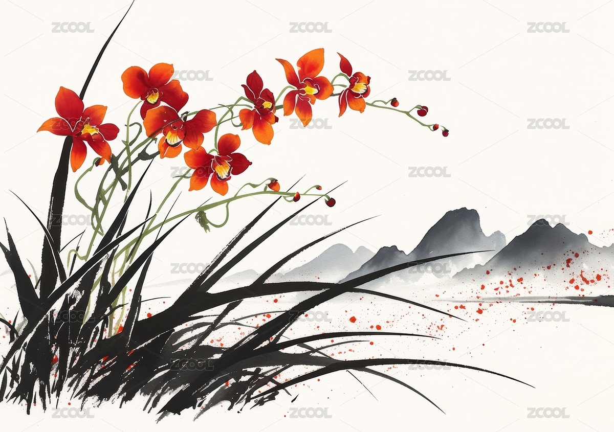 水墨兰花优雅绽放