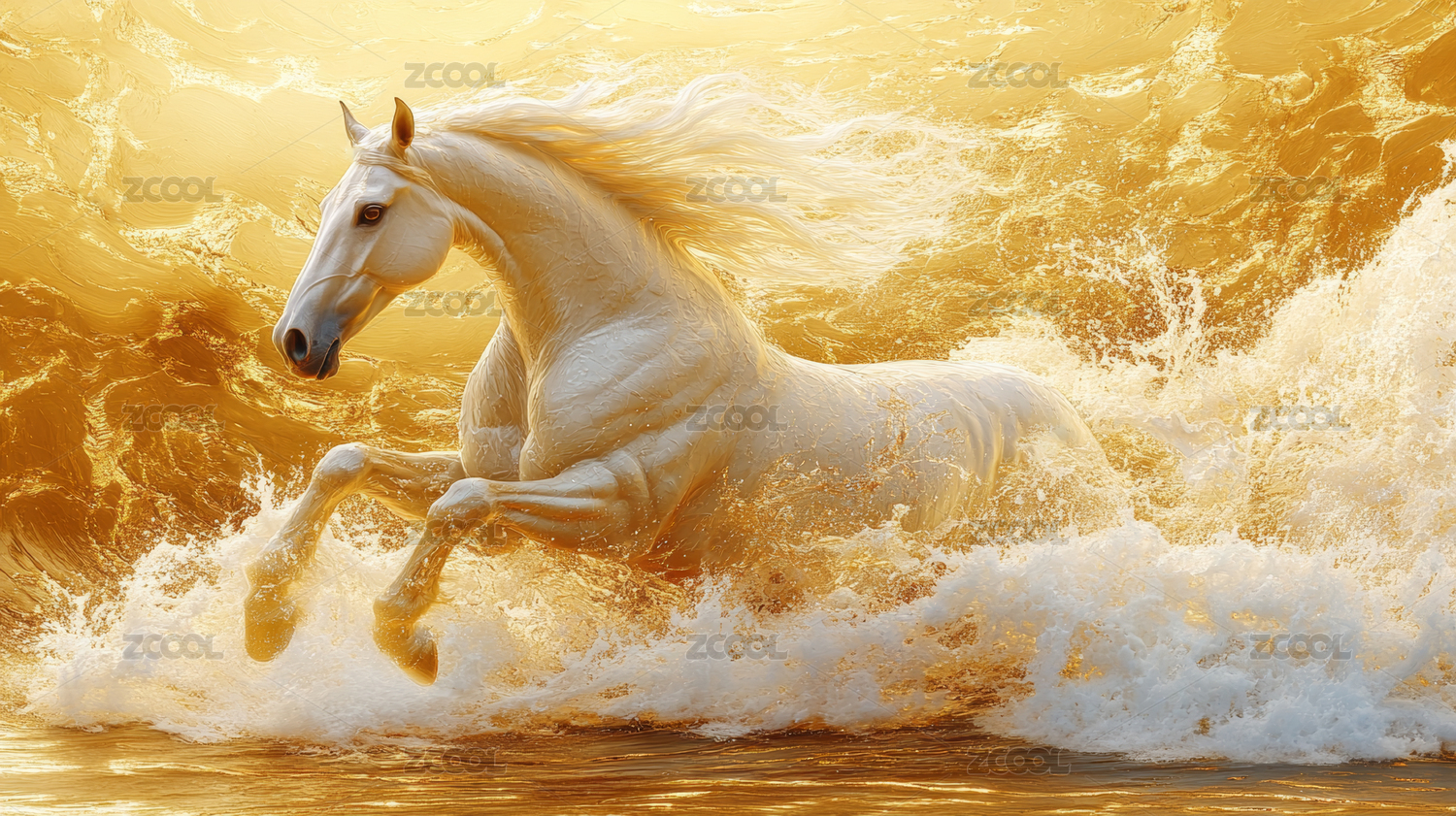 自然,艺术,海浪,奔跑,夕阳,水花,骏马,动感,力量,海岸