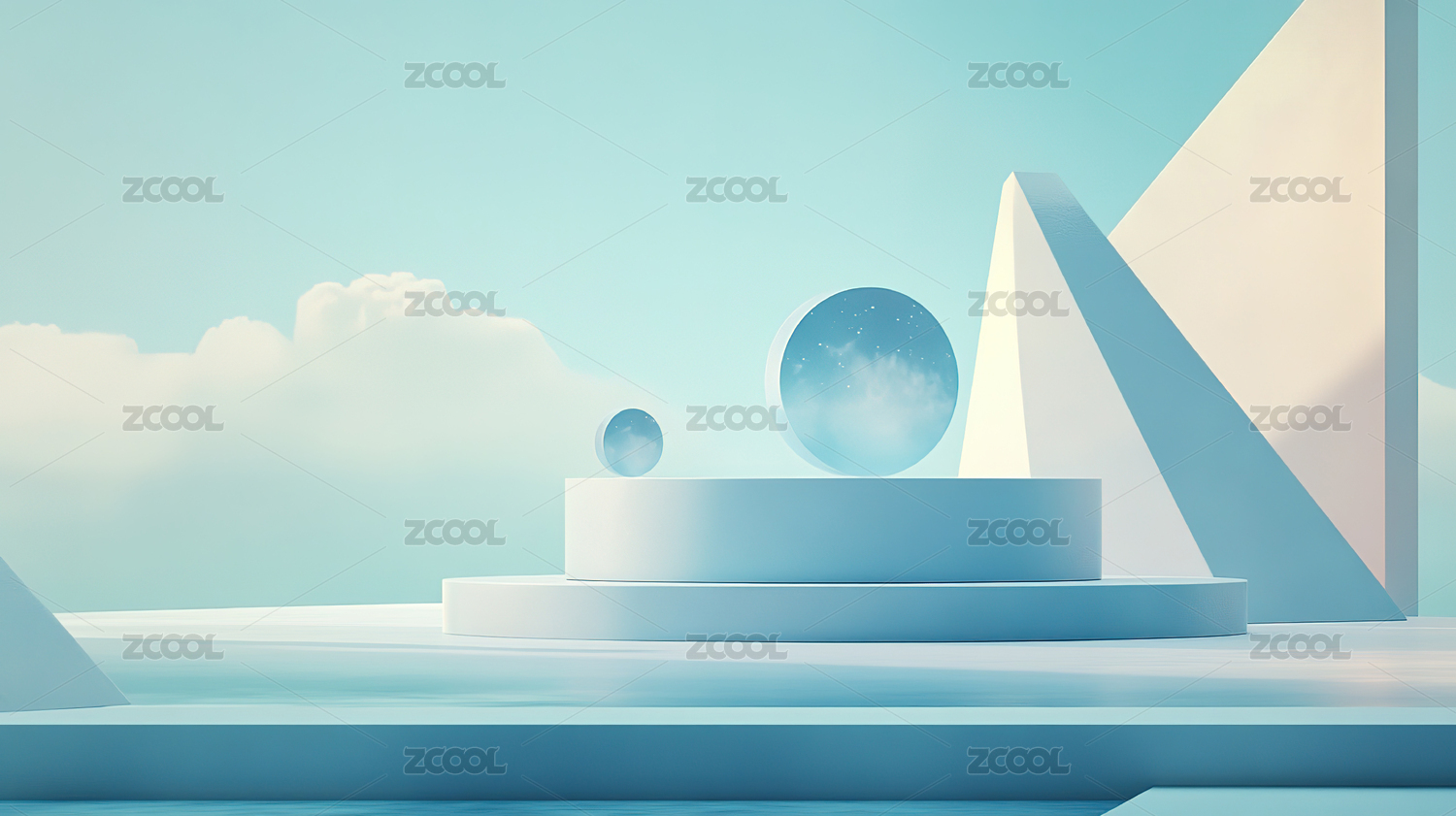 浅蓝几何立体场景图