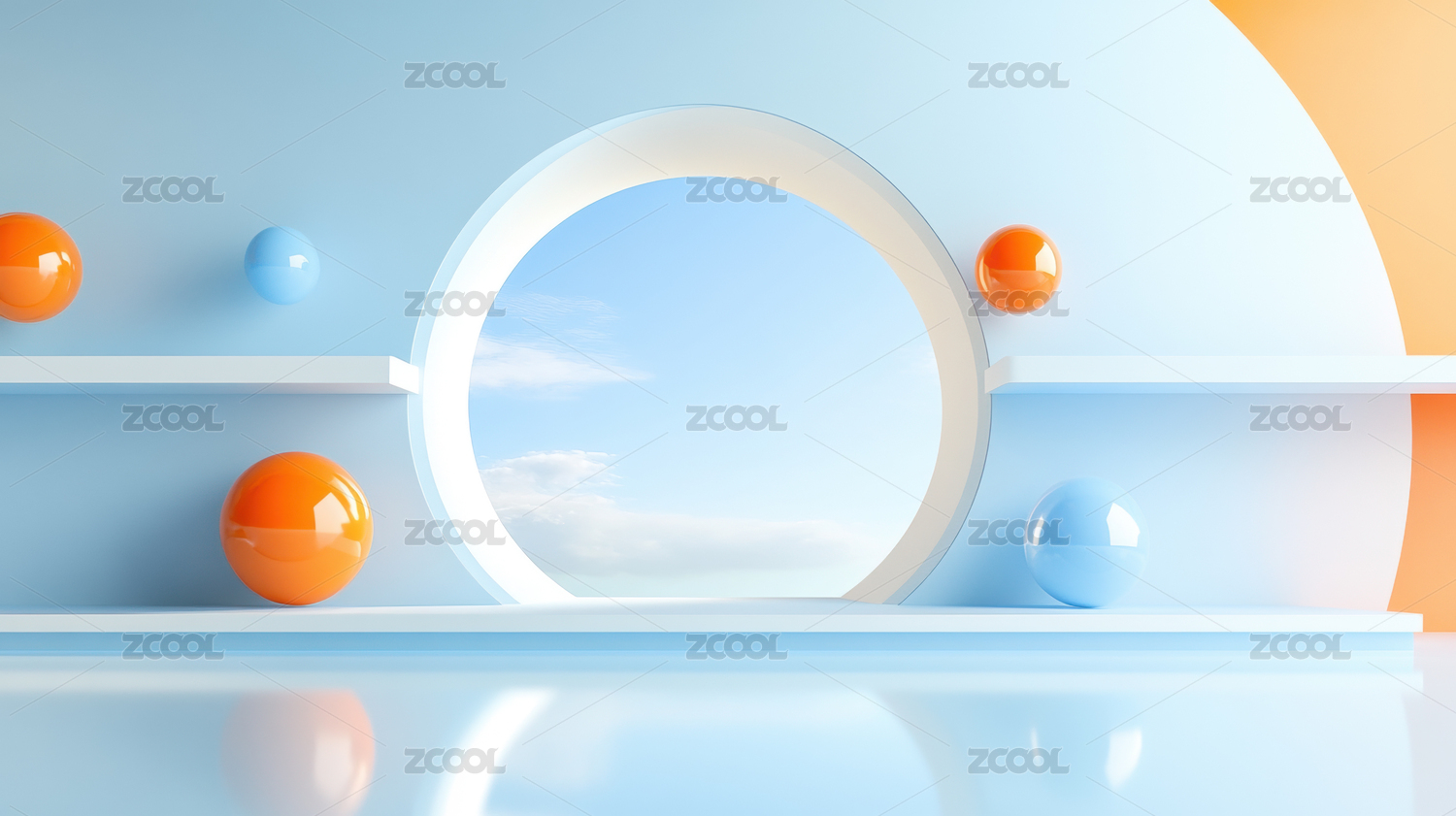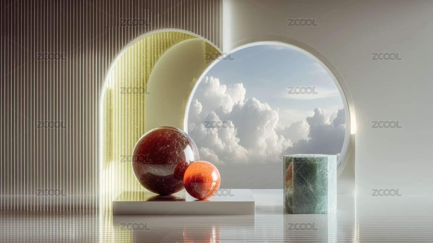 几何,艺术,现代,球体,光影,极简,主义,3D渲染,平台,设计