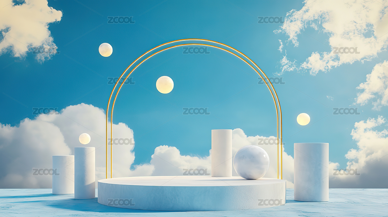 简约白色几何体场景