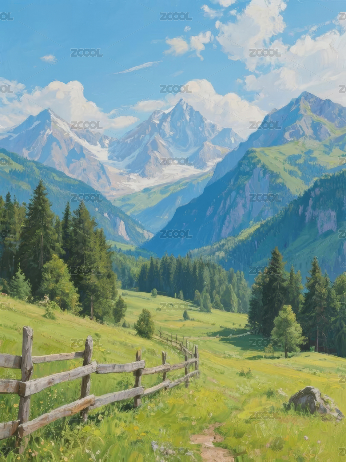 阿尔卑斯山间田园风光