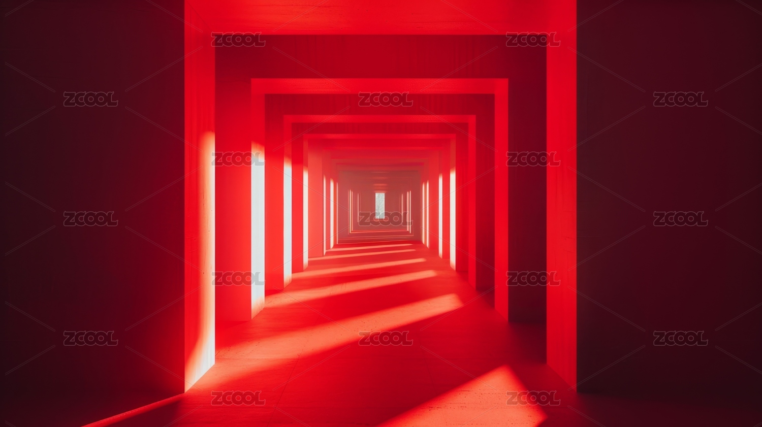 红色背景下的红色走廊