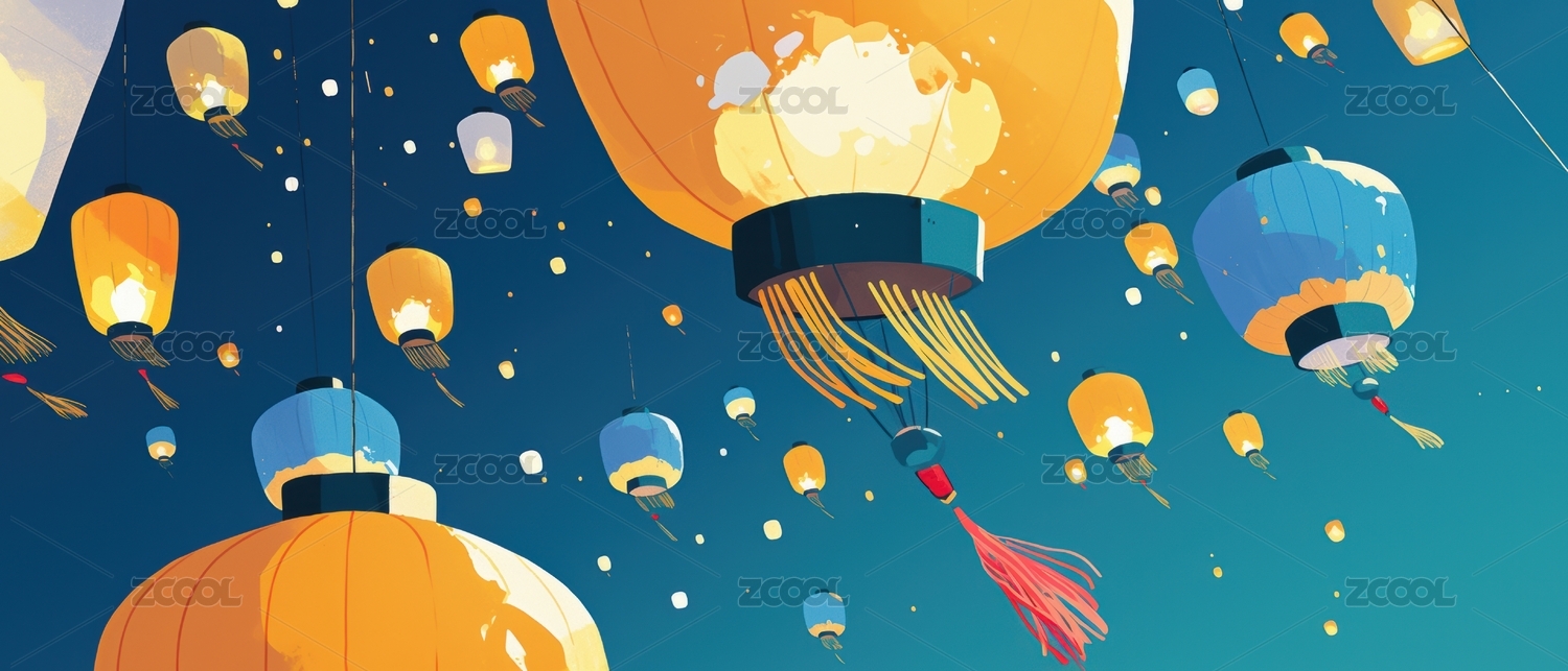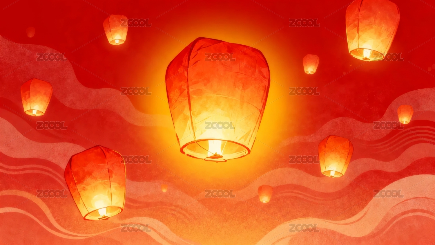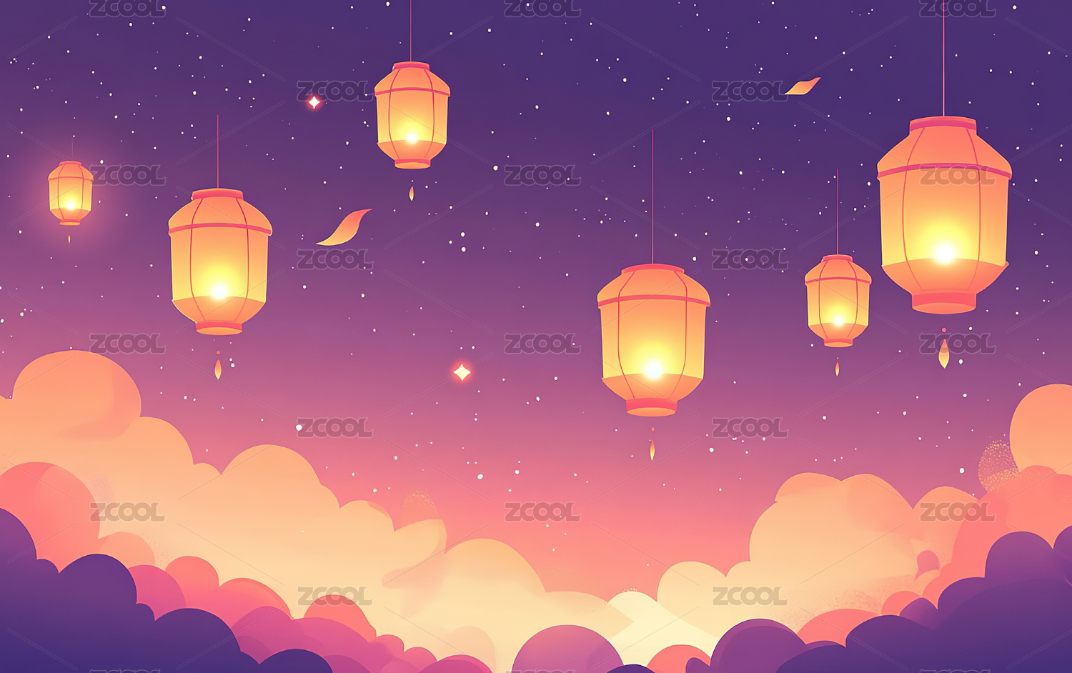 灯笼,夜空,节日,传统,光芒,云朵,飞行,梦幻,插画,孔明灯