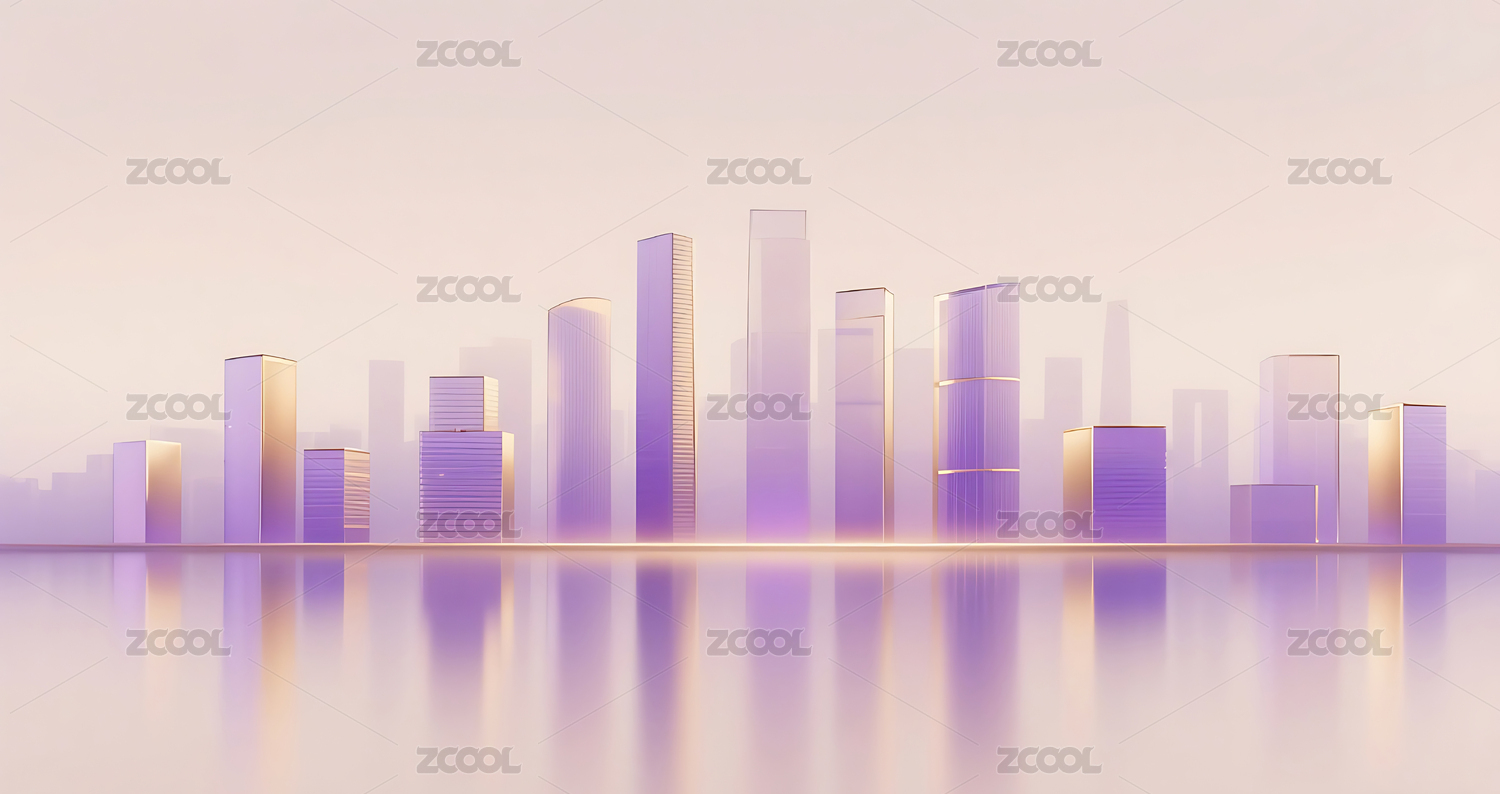 紫金色几何玻璃城市建筑背景