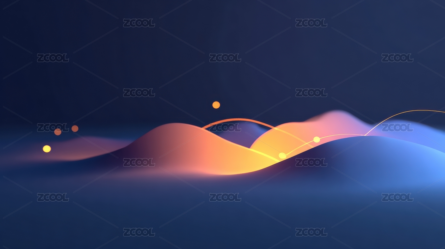 抽象波浪山丘与渐变天空