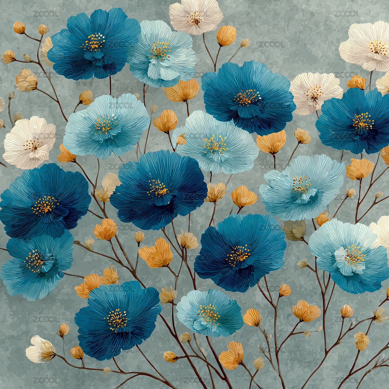 图案,背景,花卉,蓝色,白色,矢量,插画,植物元素,装饰性,平面