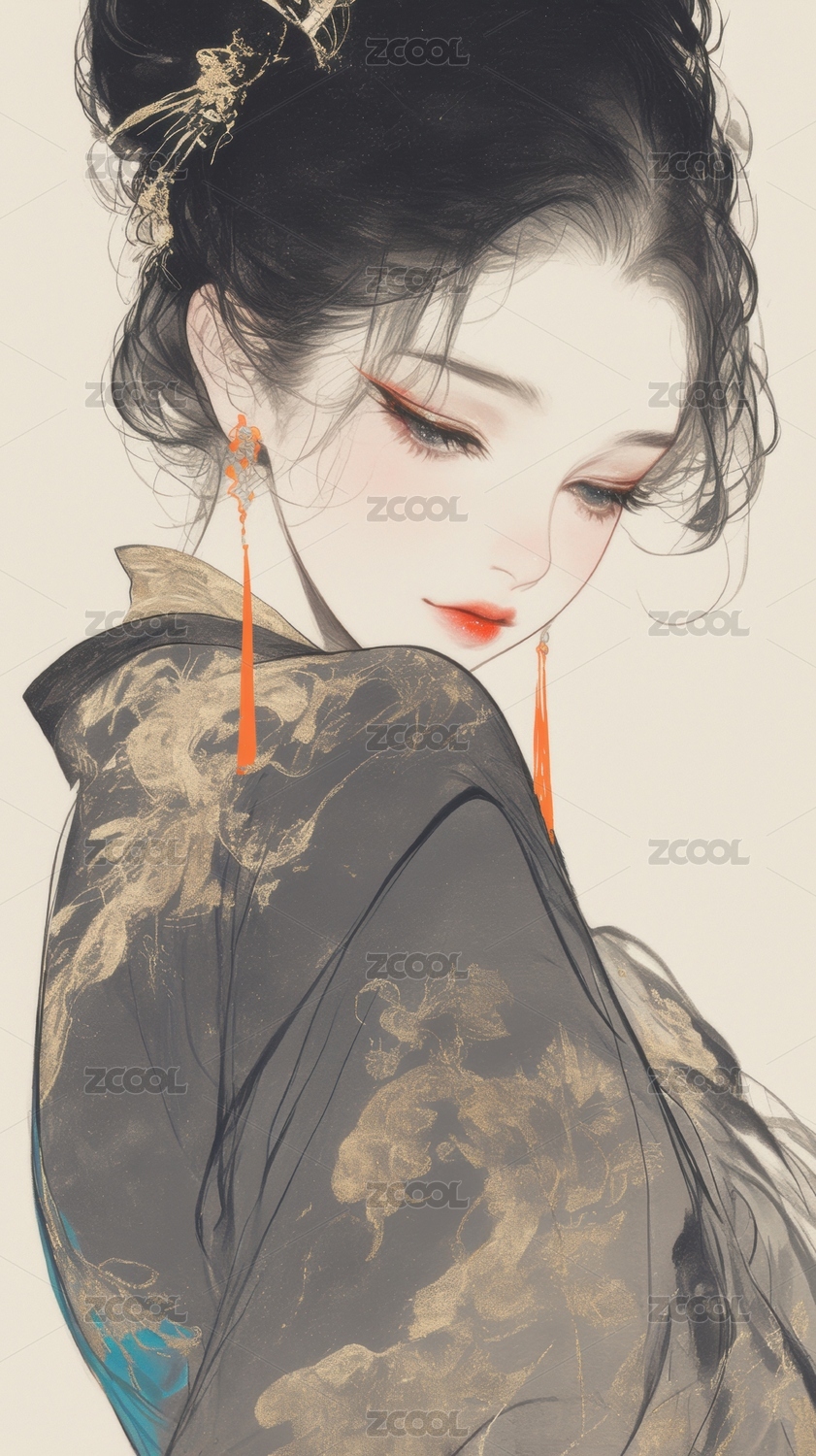 背景,女性,艺术,美丽,古典,美人,服饰,耳环,传统,优雅