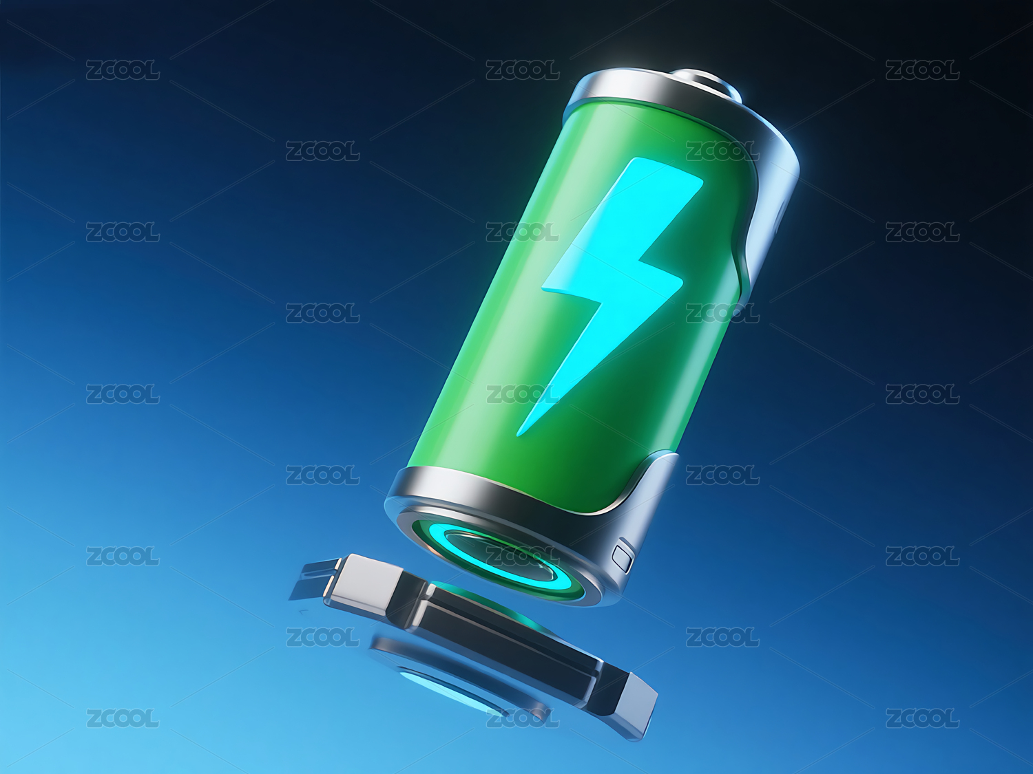 电池,闪电,卡通,插画,矢量,动态,电力,科技,立体,蓝色