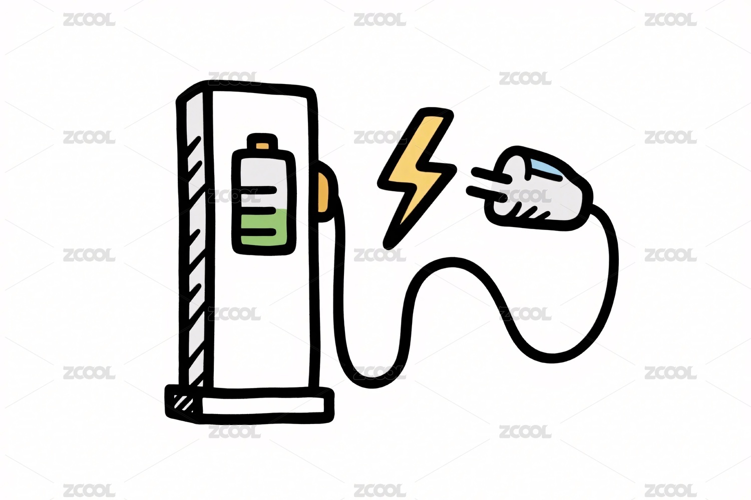 手绘充电站与插头