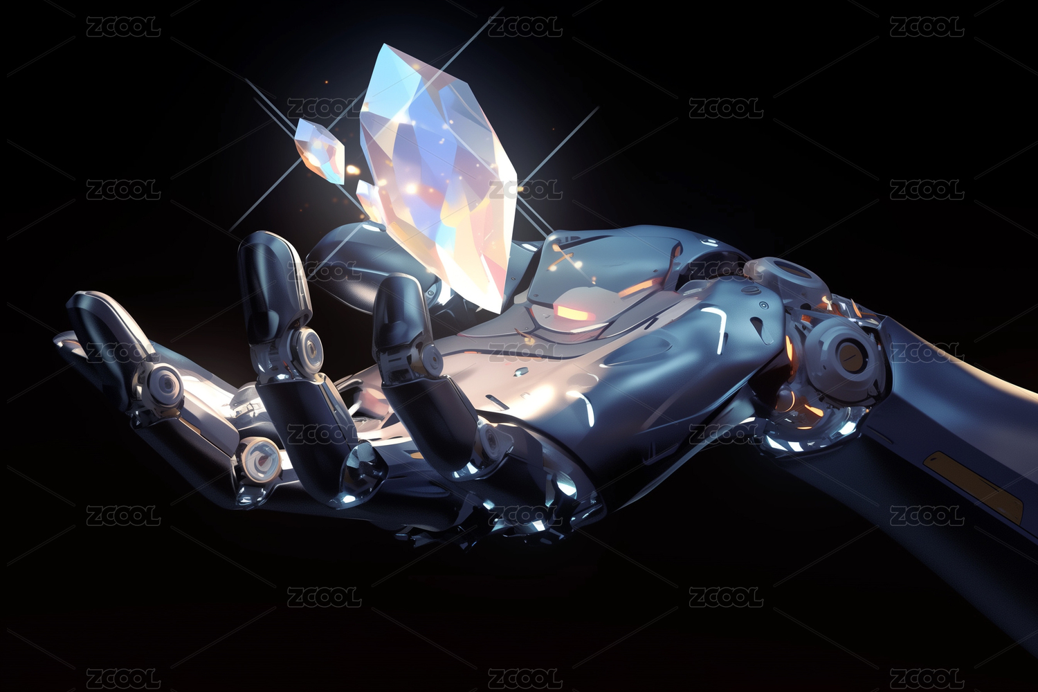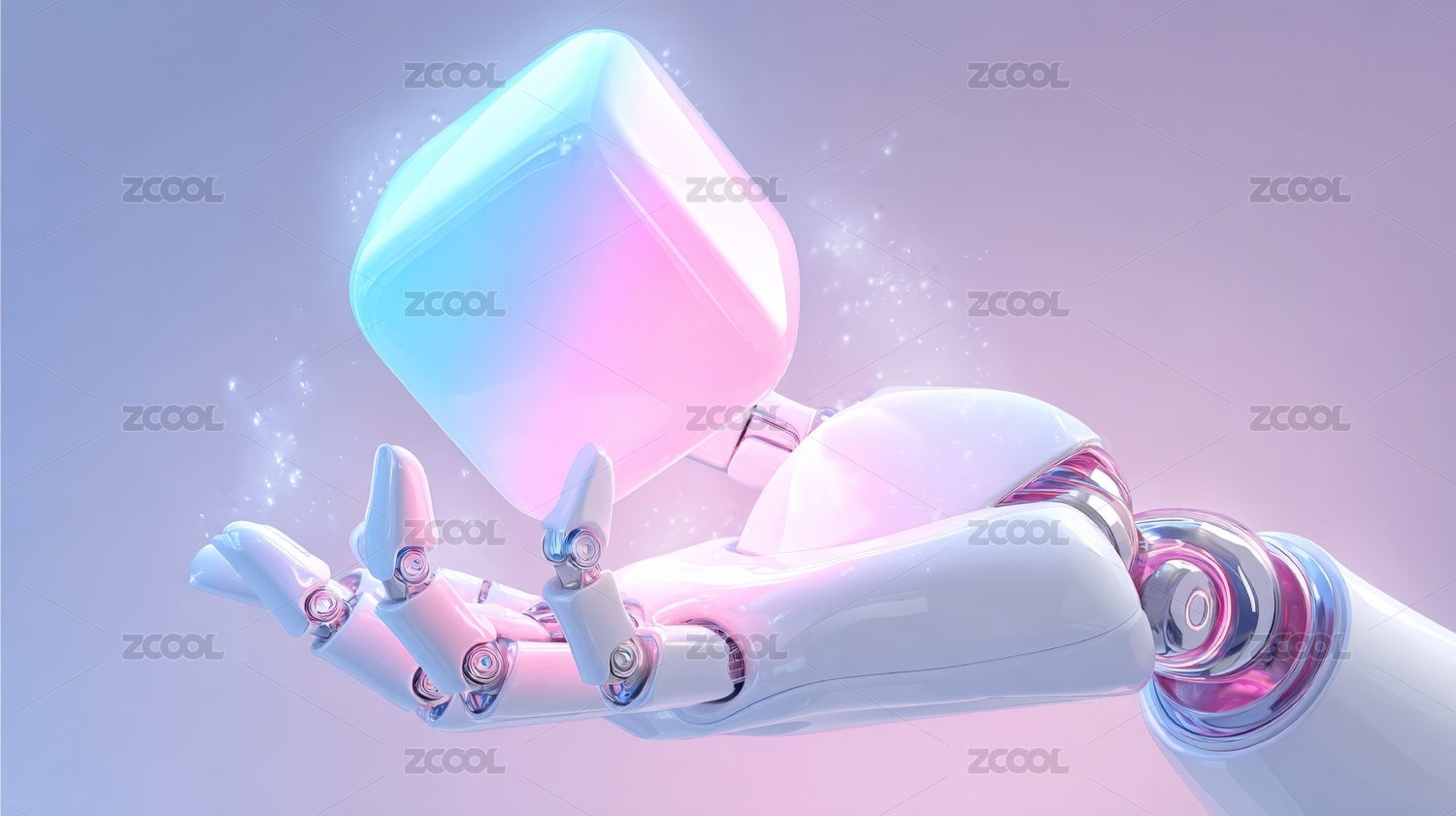 未来机械手托举闪耀水晶立方体