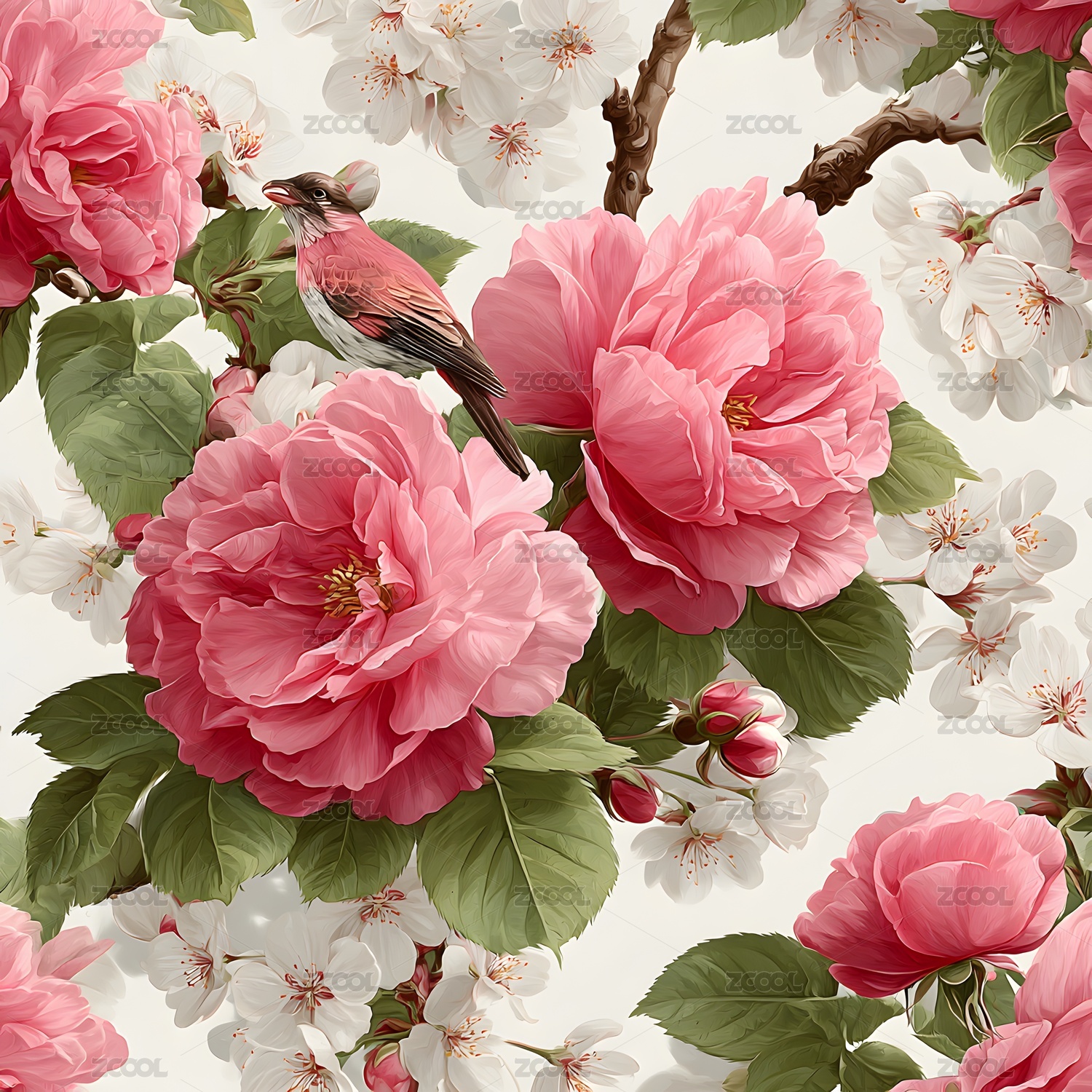 春日花卉与鸟的和谐画面