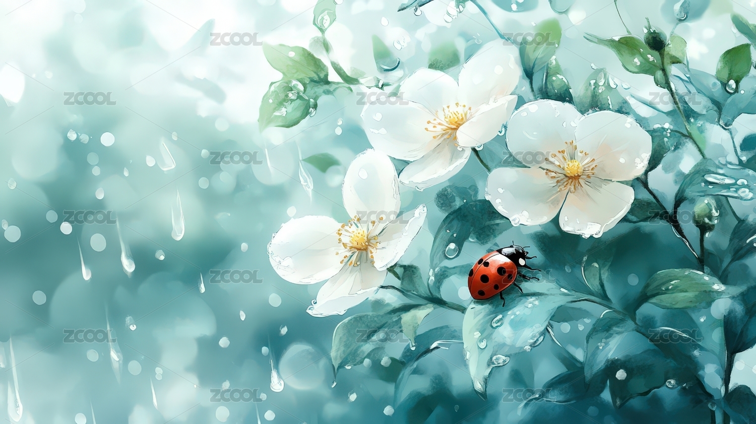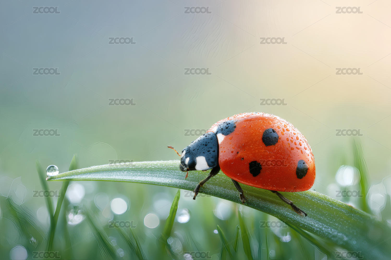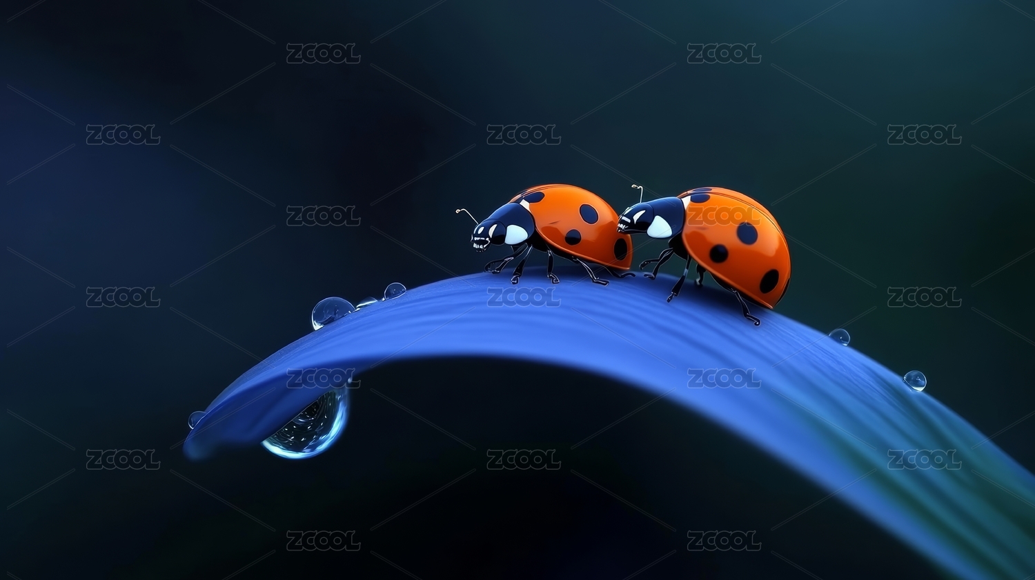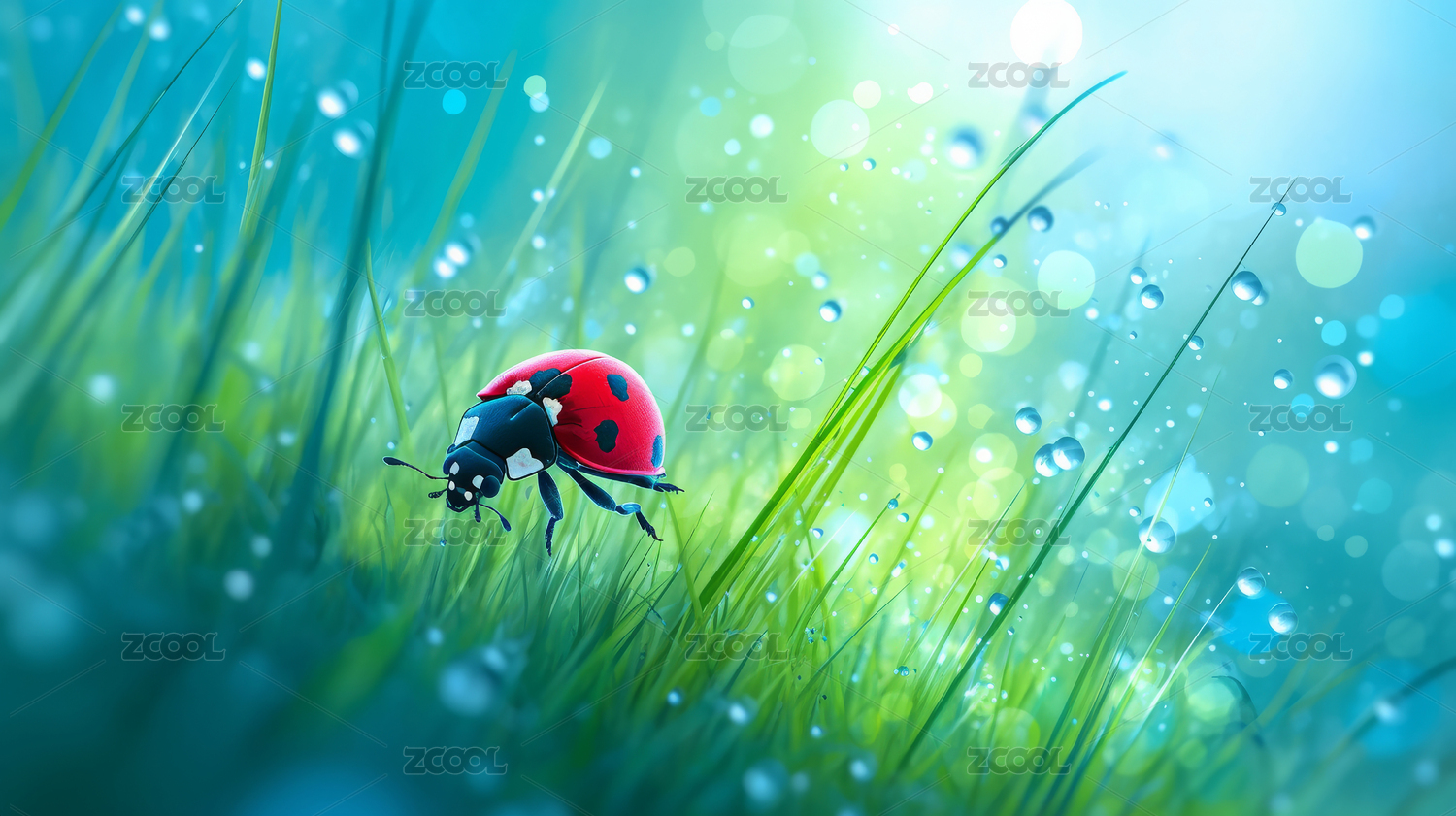 瓢虫水滴自然生态场景