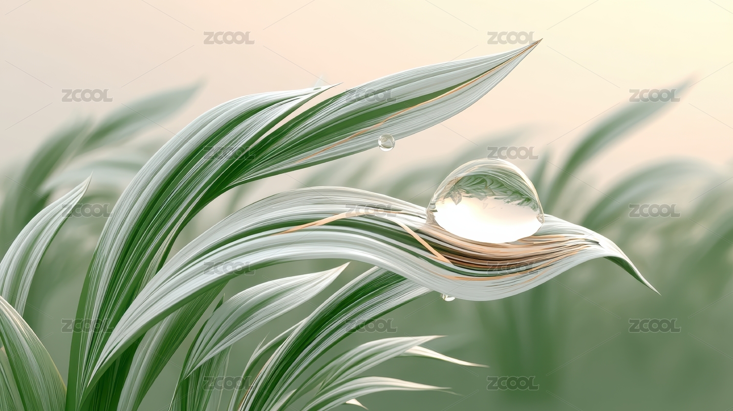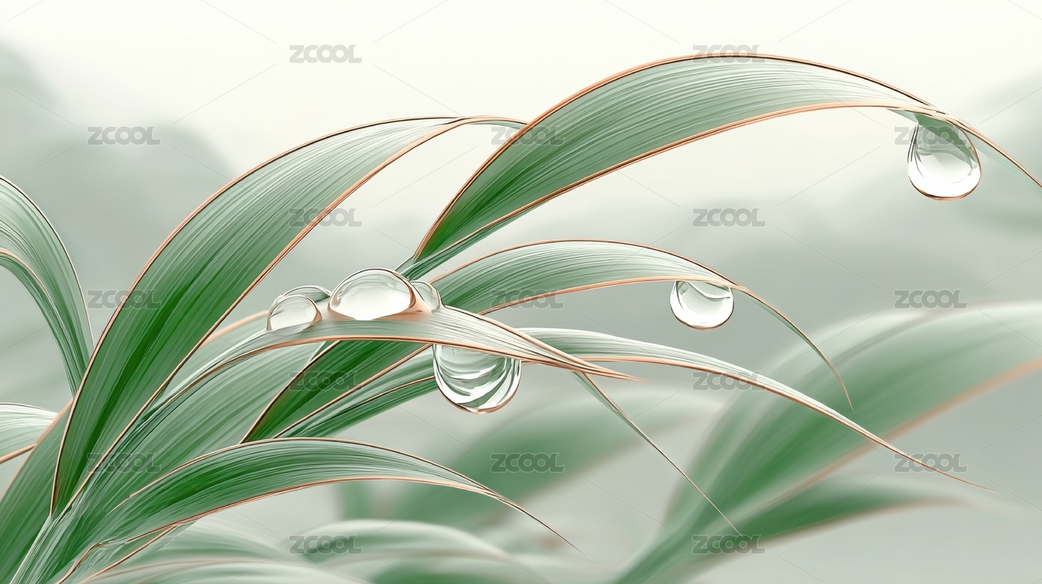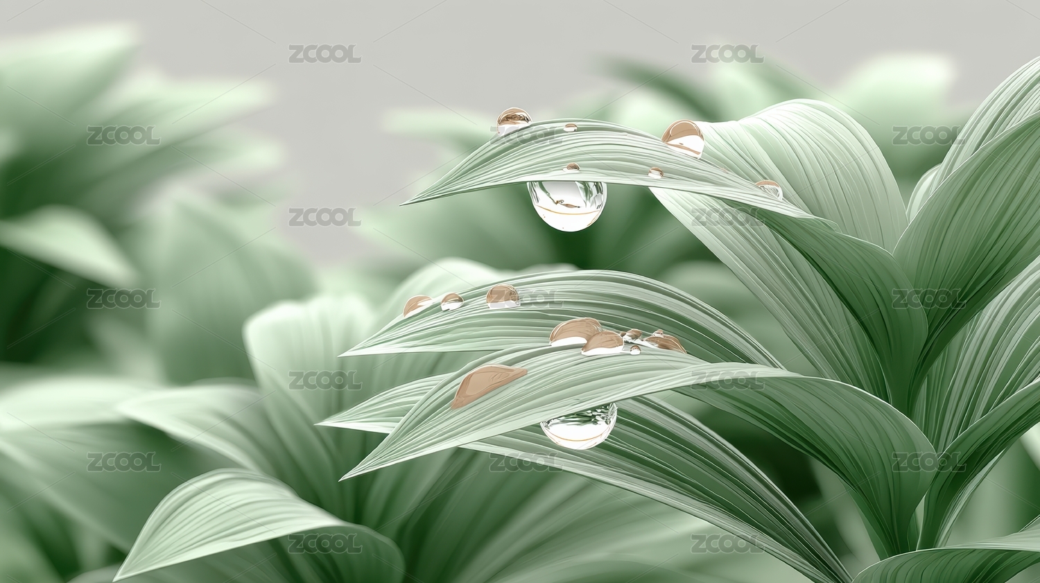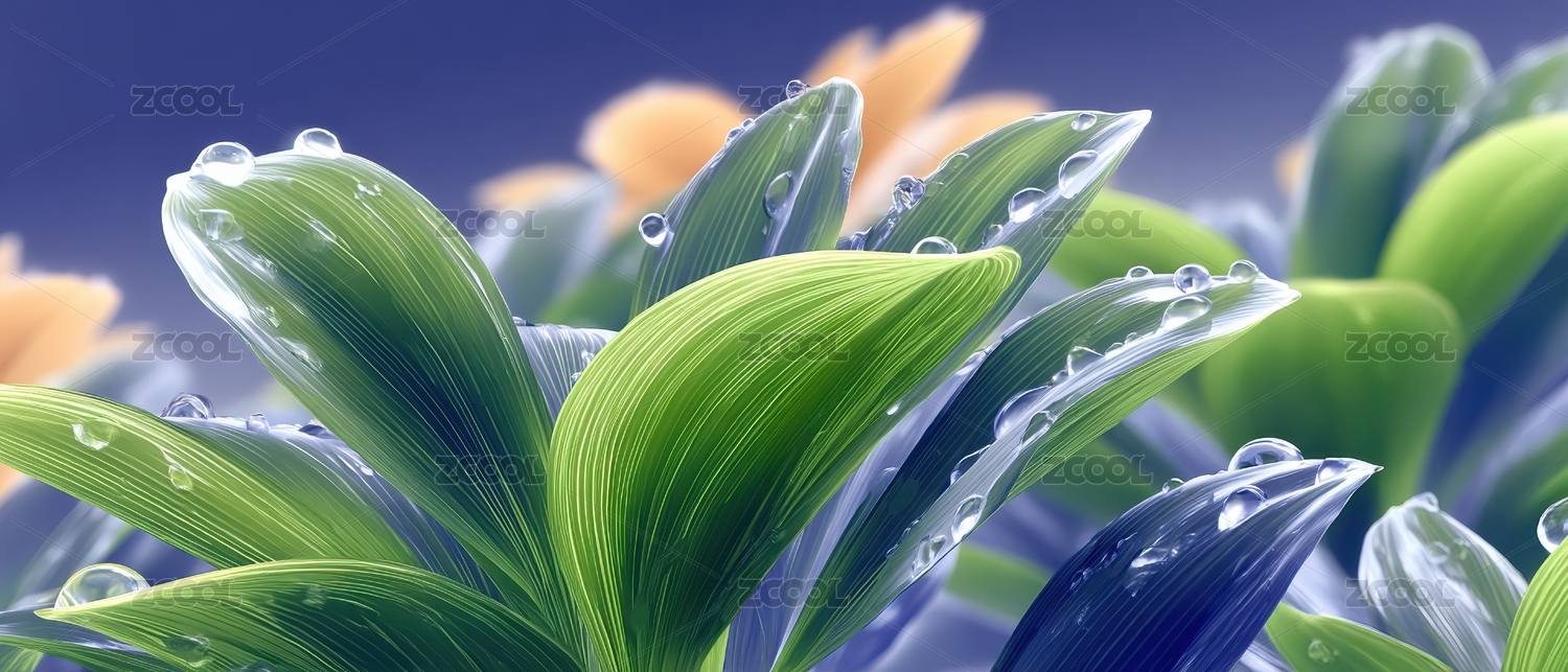 露珠绿叶清新自然场景