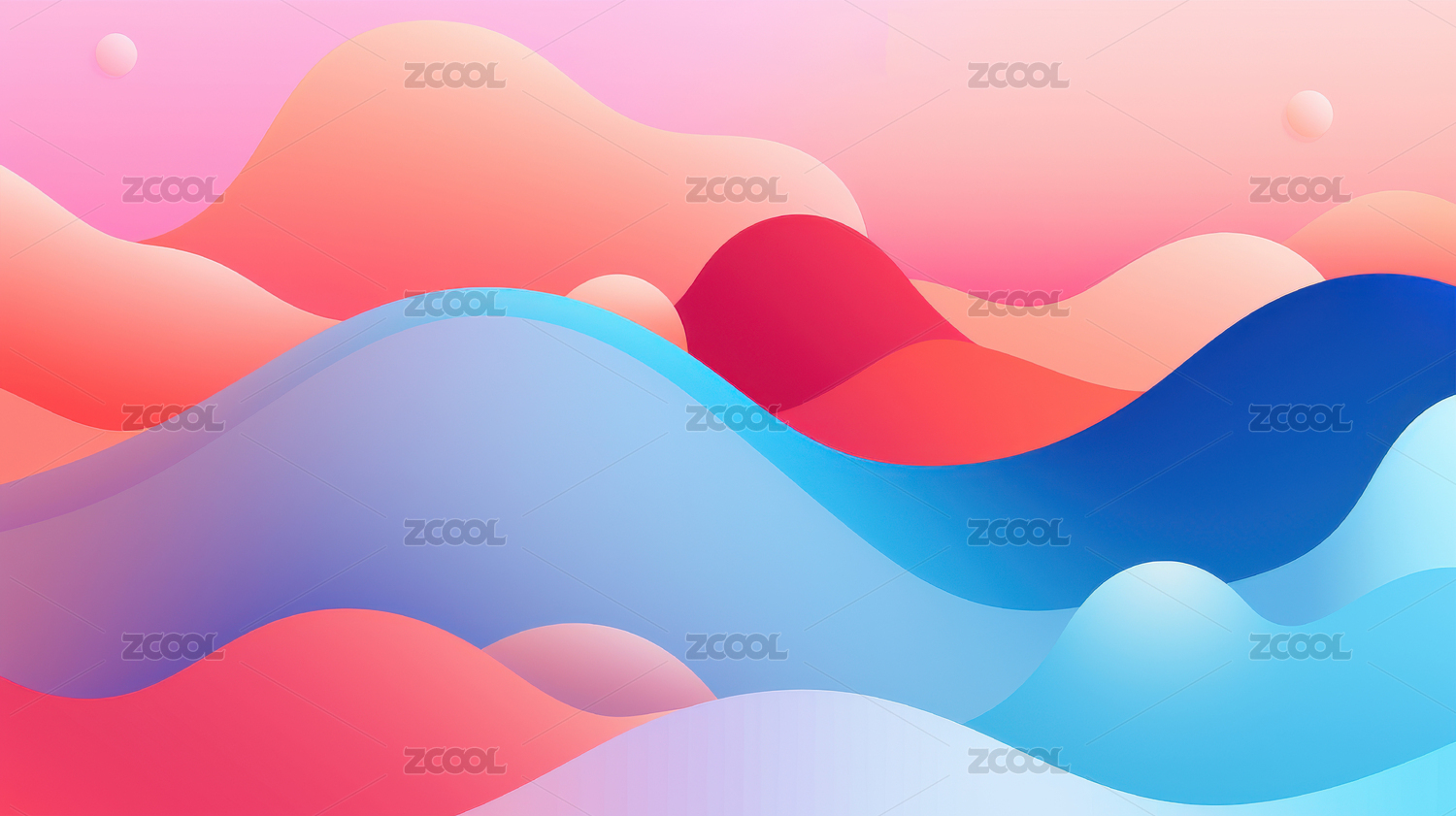 红色蓝色渐变波浪曲线明亮活力质感抽象背景