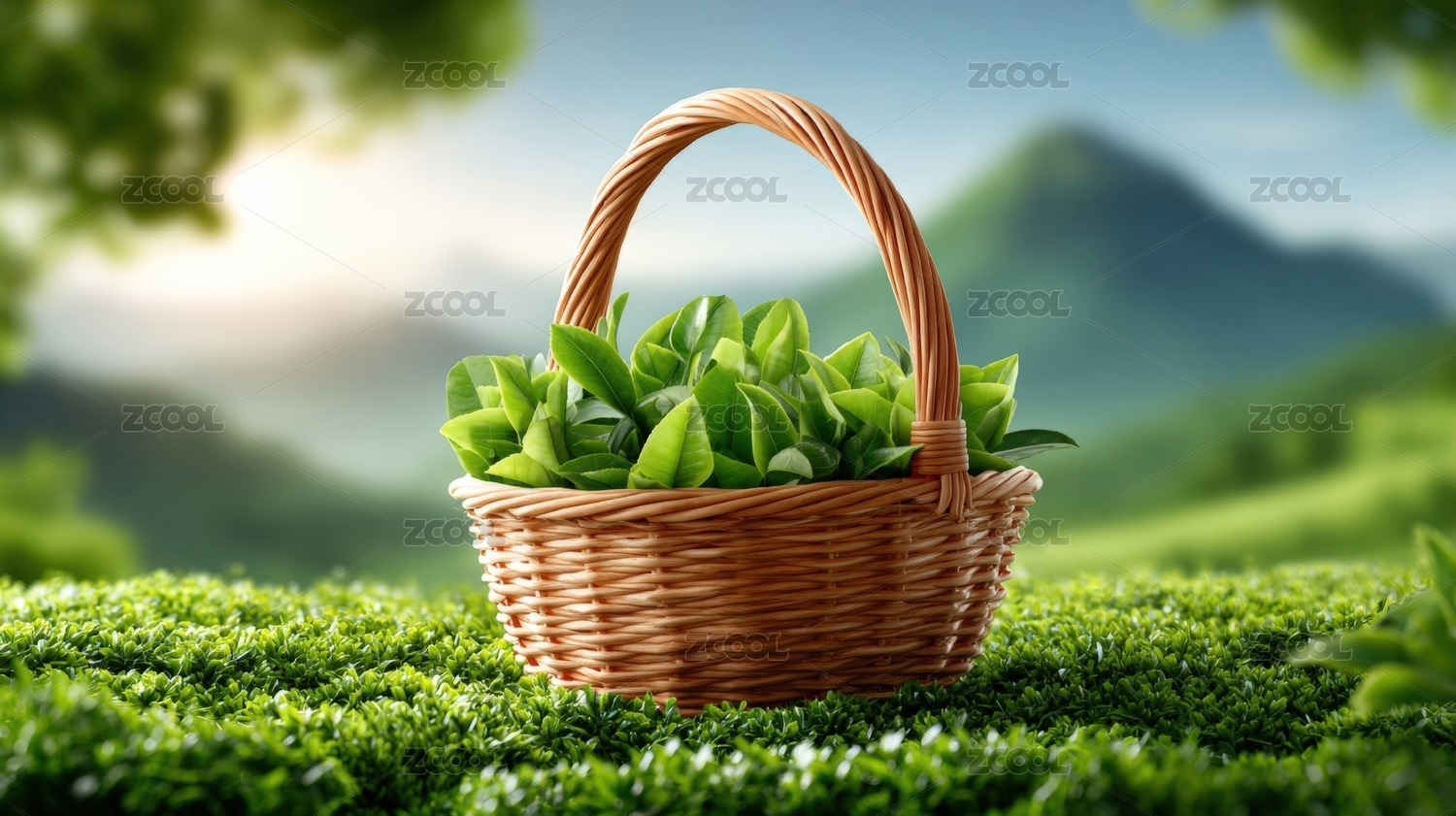 简单清新明亮杯中的茶水茶叶插画扁平绘画