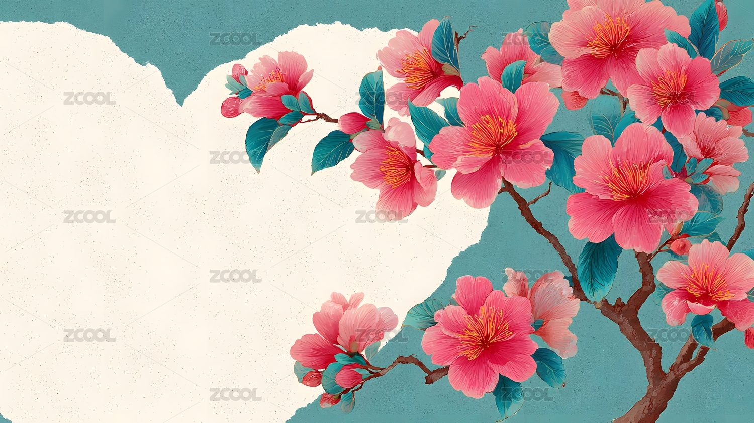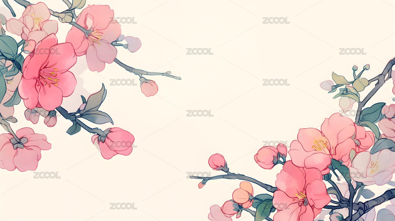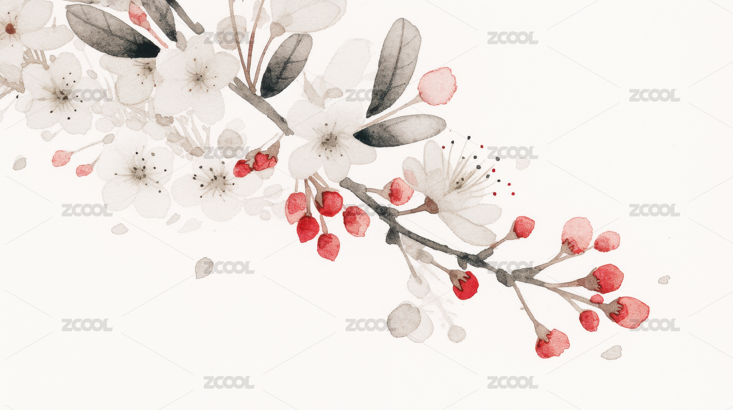 水墨风的樱花枝条设计