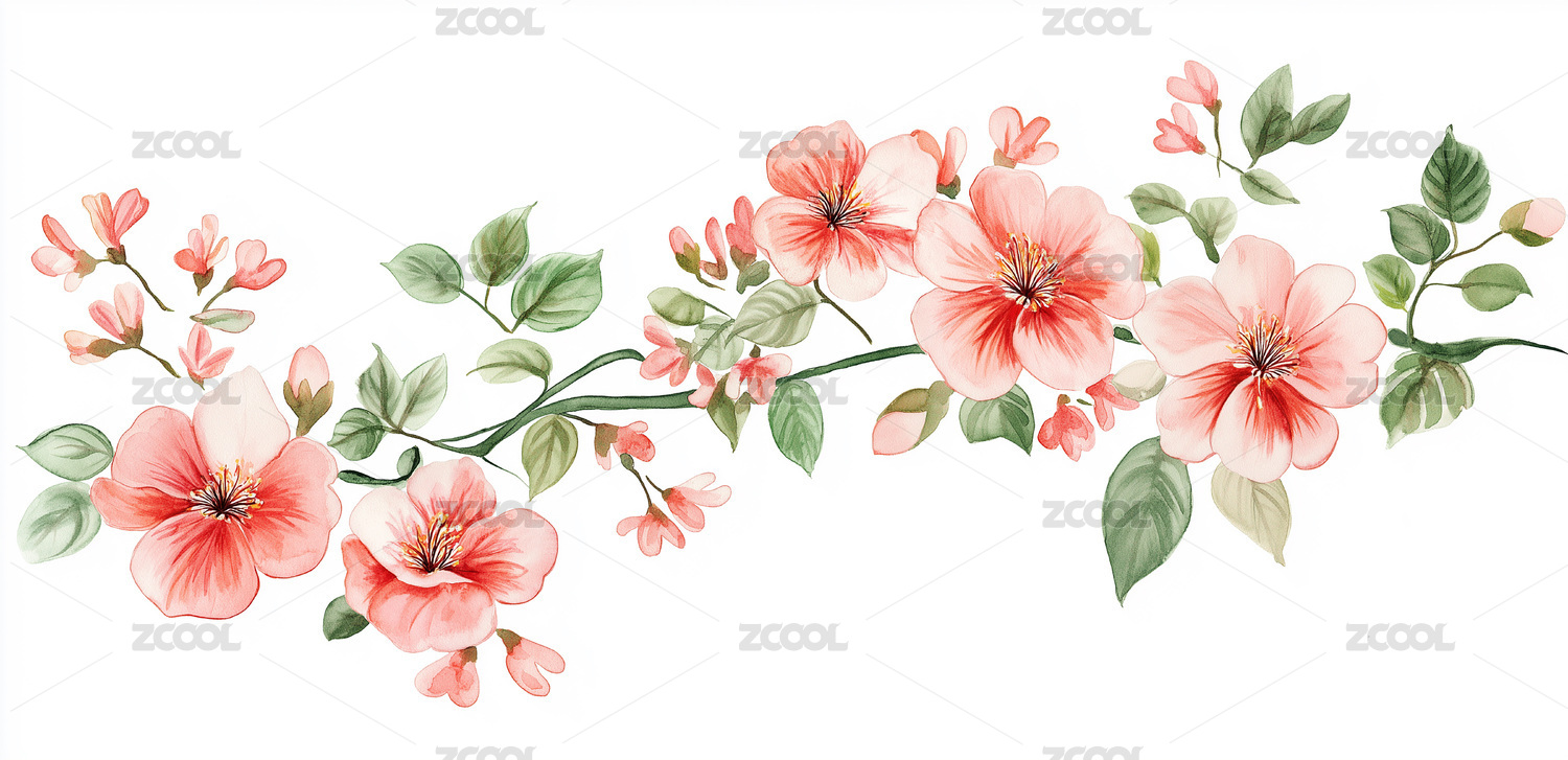 粉色花朵与绿叶组合