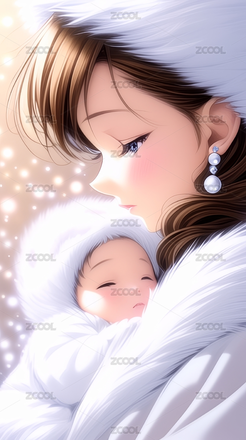 深夜穿睡衣的妈妈再床上哄娃入睡开着台灯