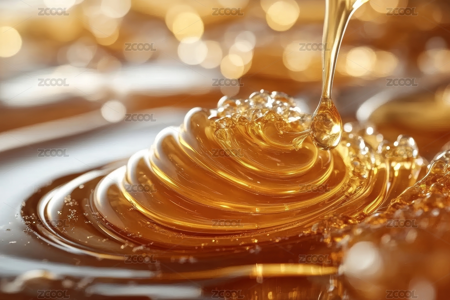 蜂蜜滴落闪耀金光的场景