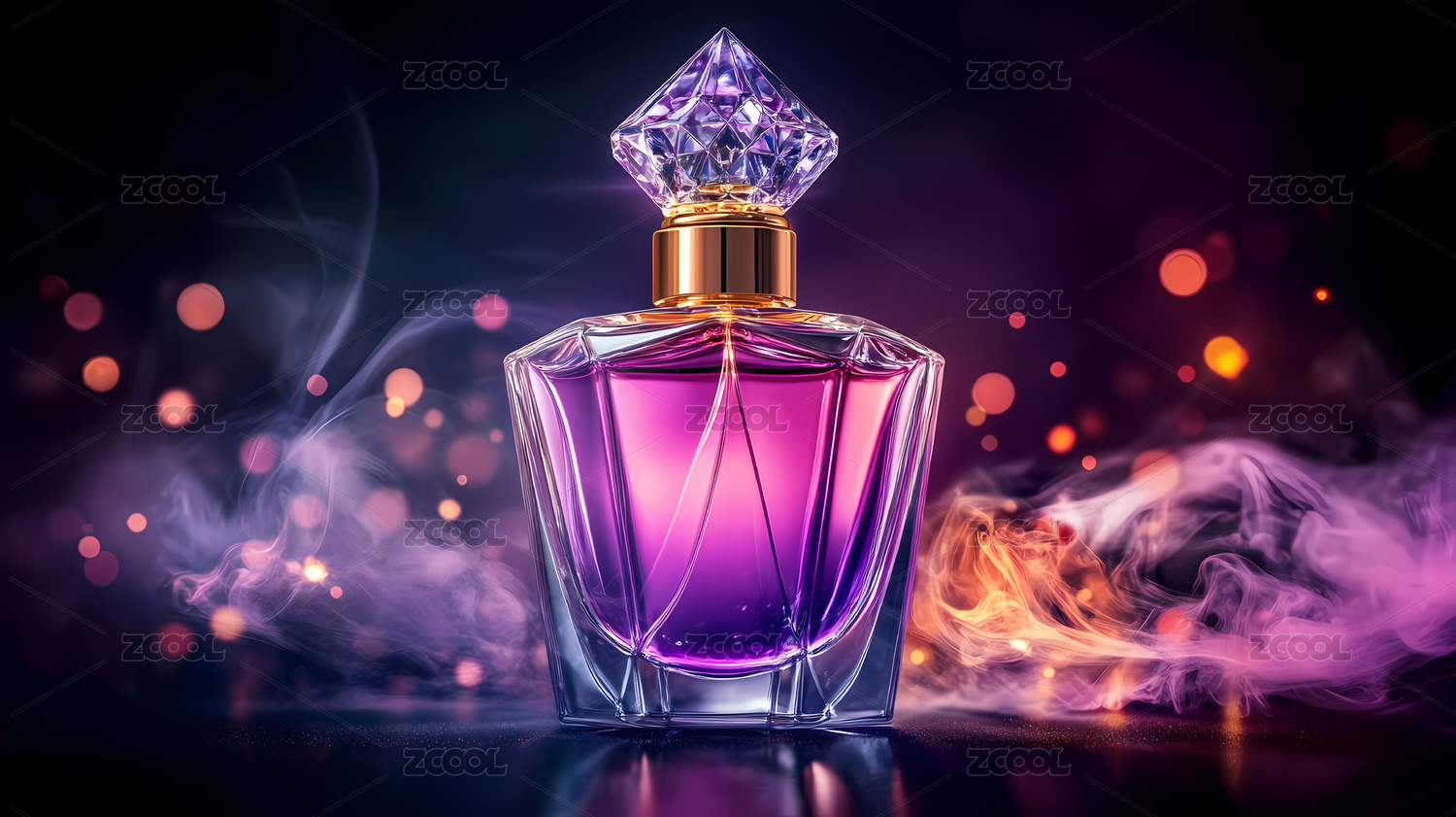 晶莹香水瓶在梦幻灯光下的艺术展示