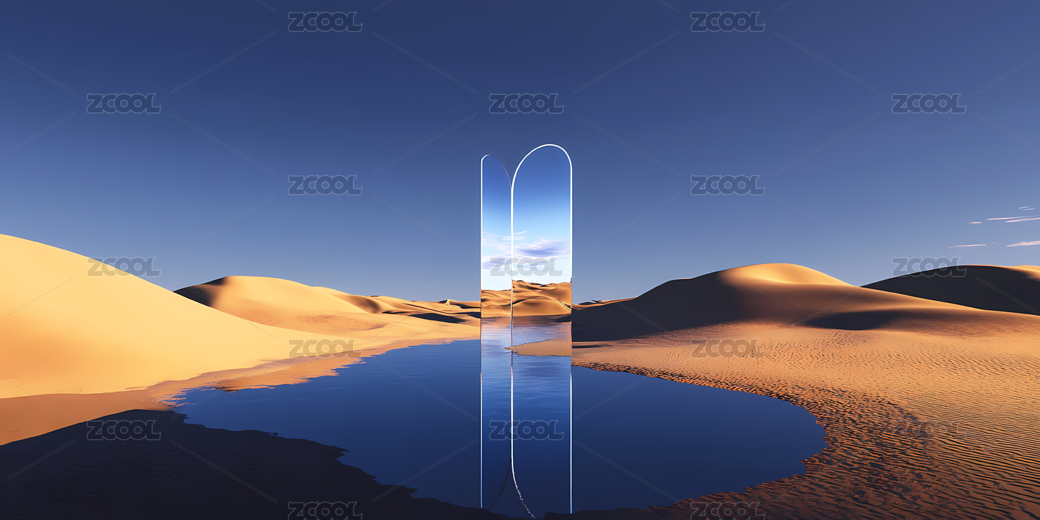 沙漠中的水池与透明拱门